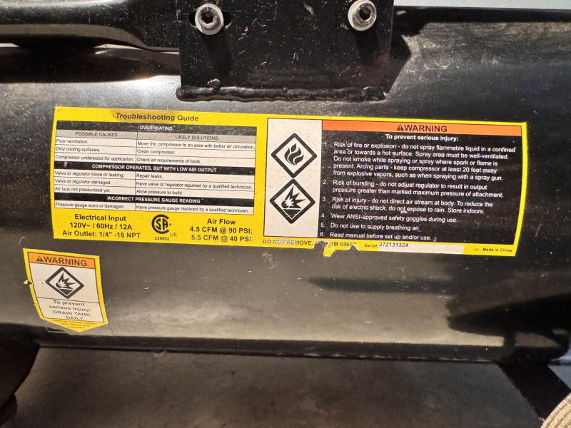 Central Pneumatic 8 Gallon 2 HP 125 PSI Air Compressor.
