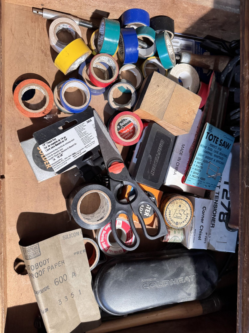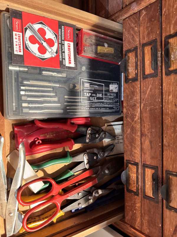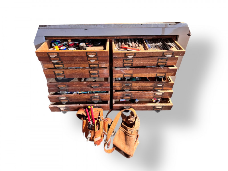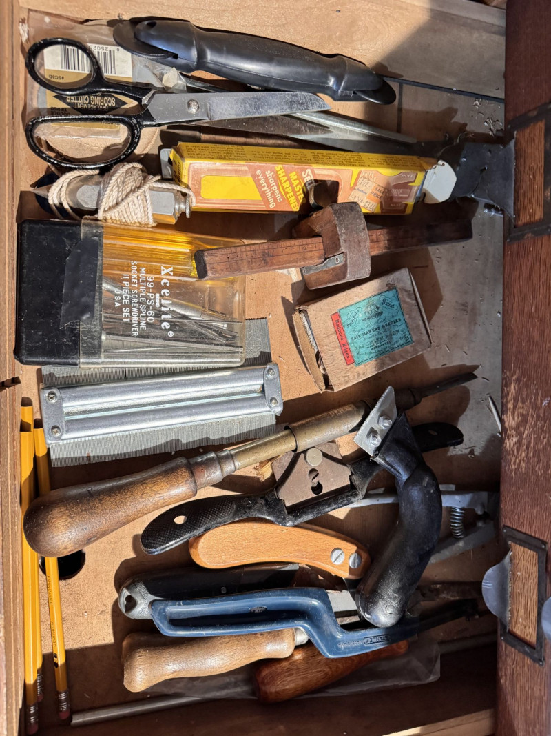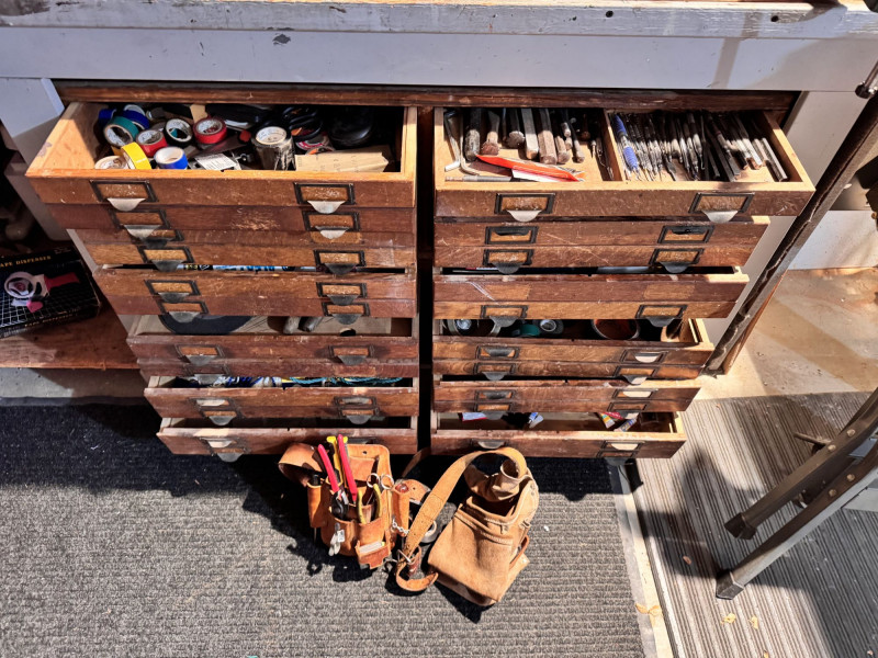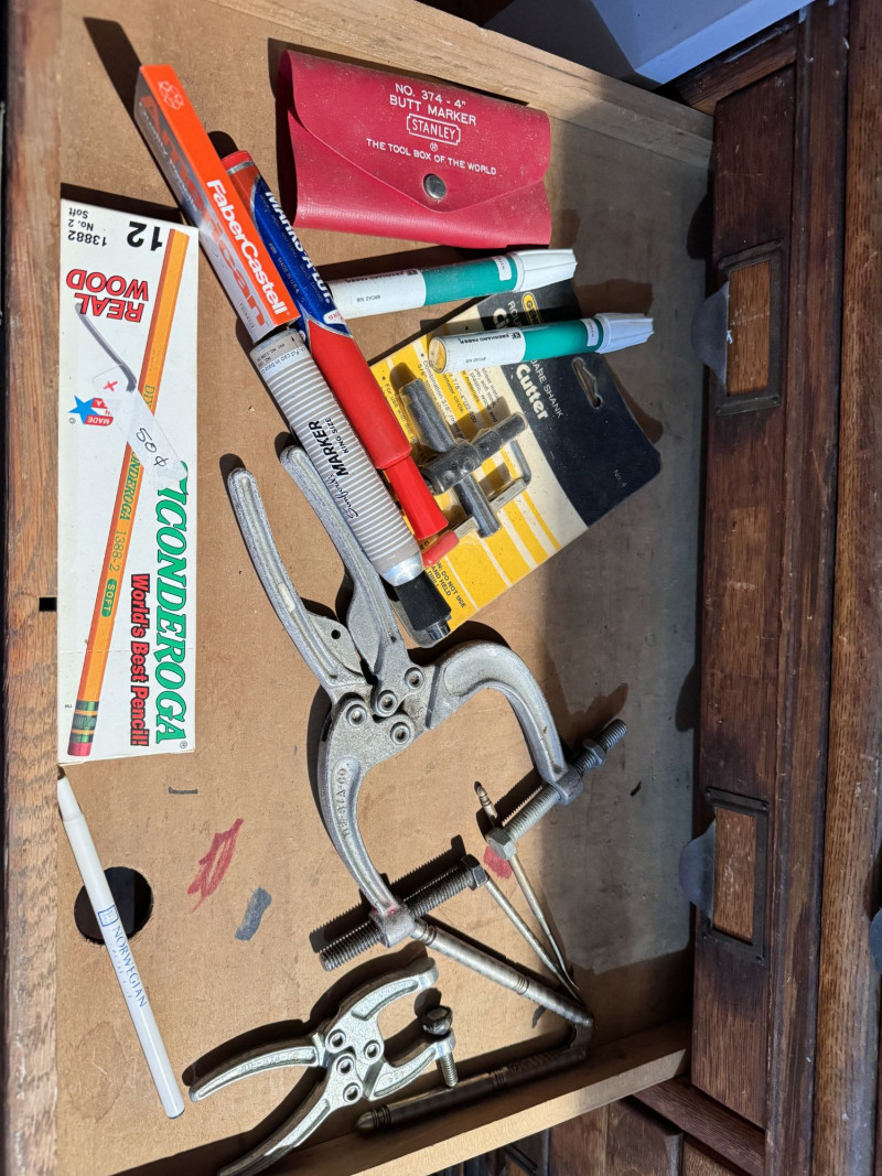 Workshop Tool Assortment – Hand Tools, Supplies – Cabinet Not Included.