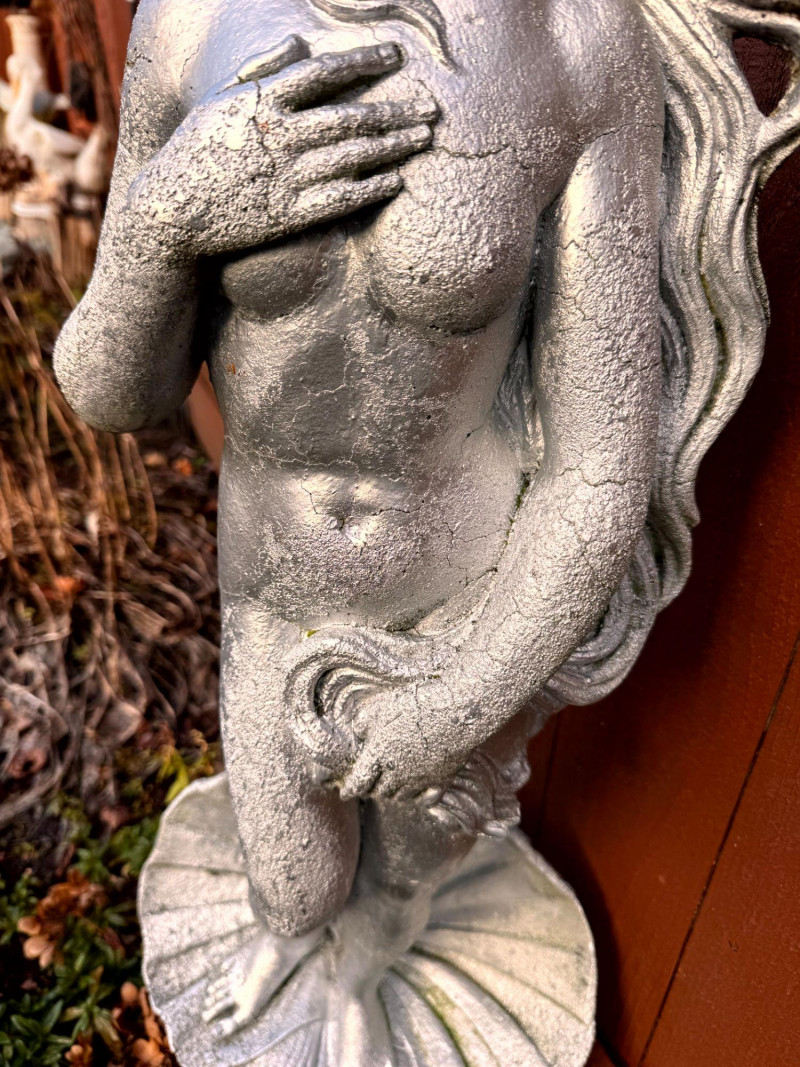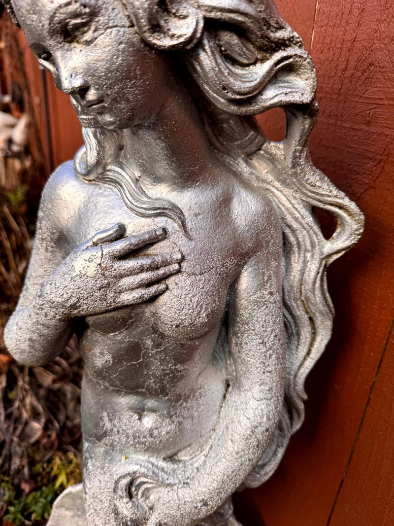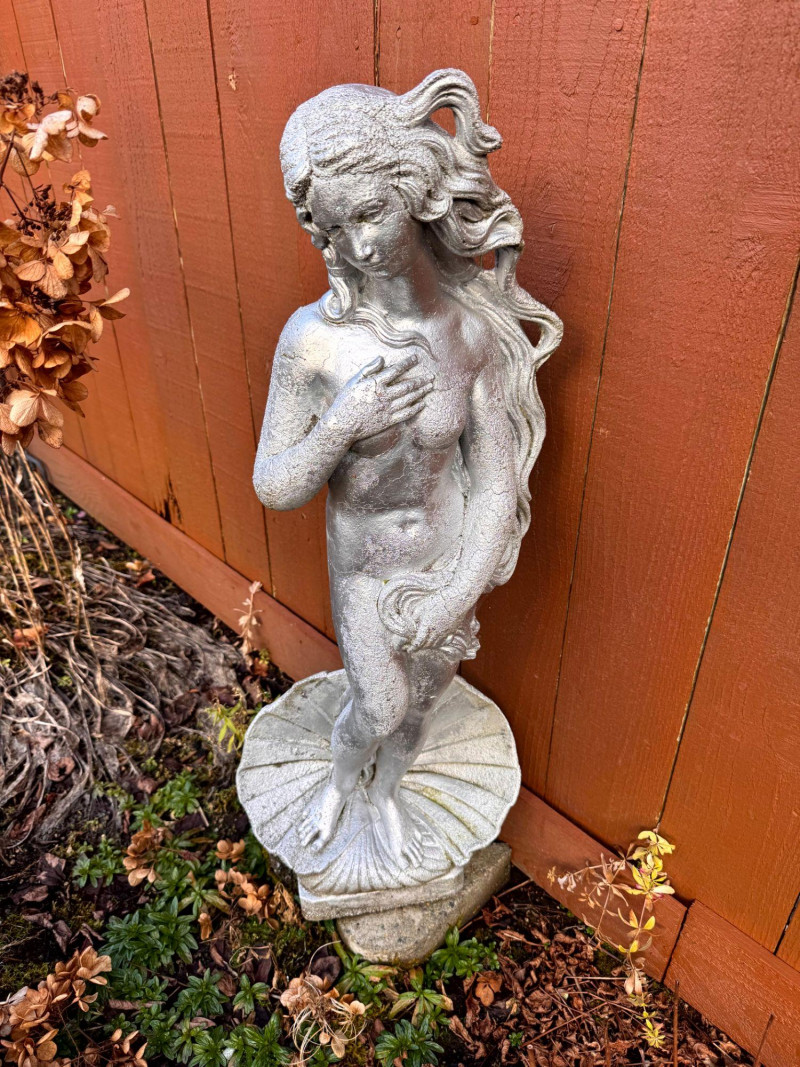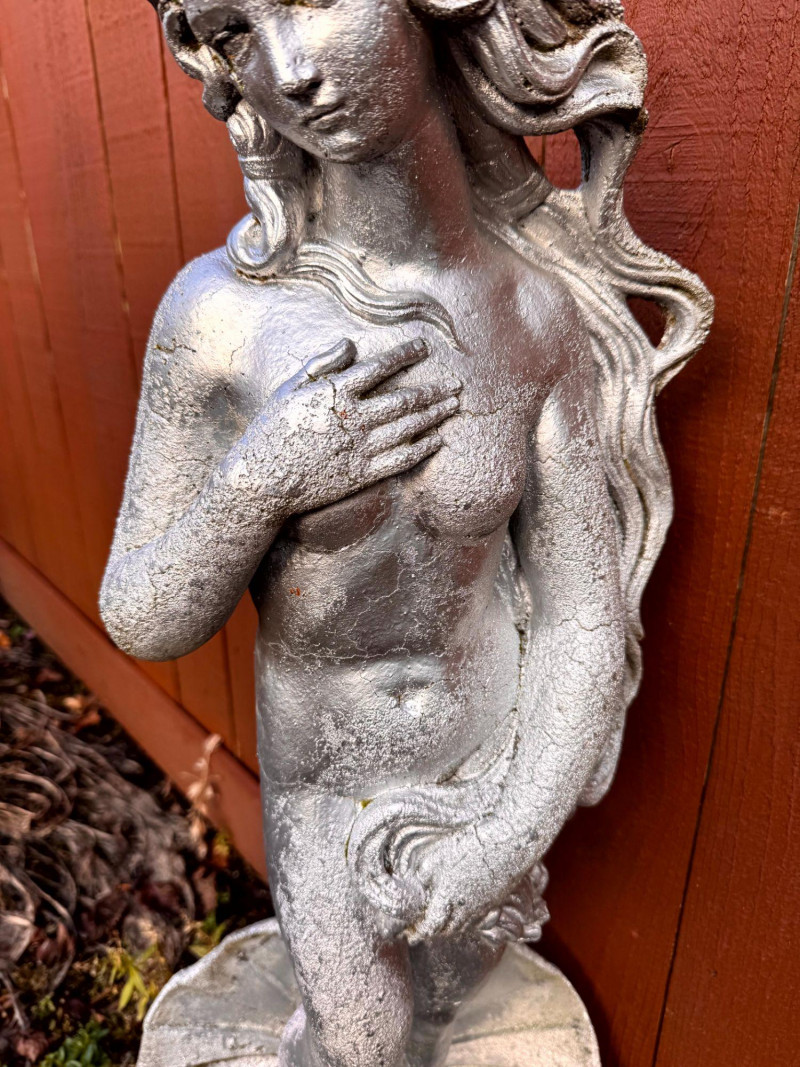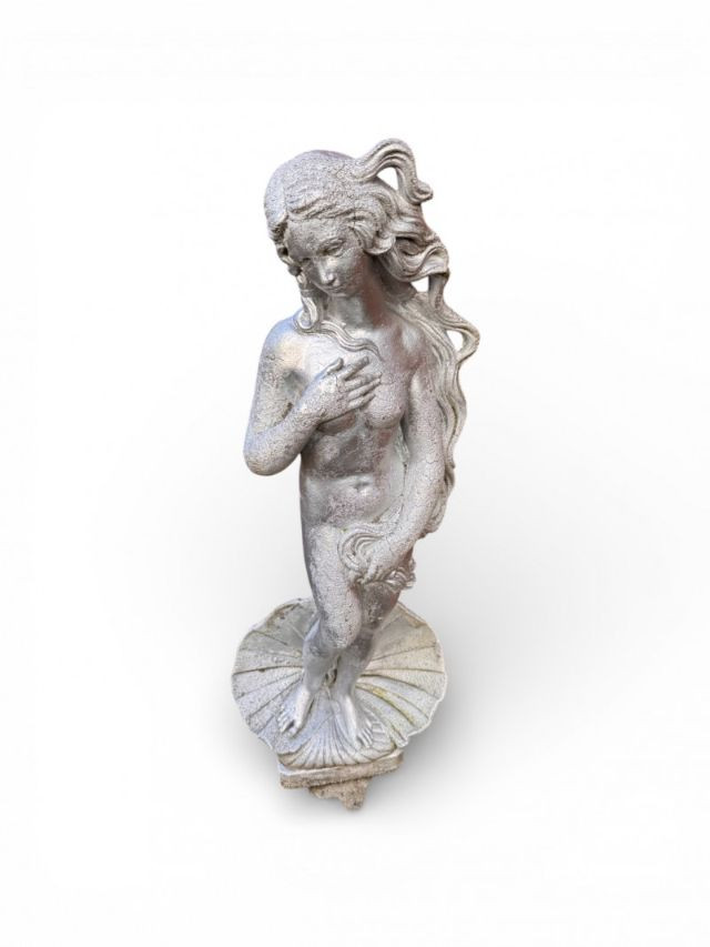 Silver Painted Cement Sculpture Venus Botticelli Replica Figure.
