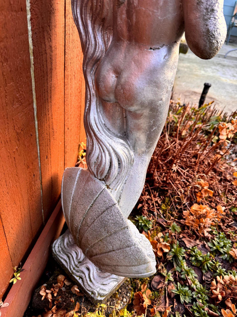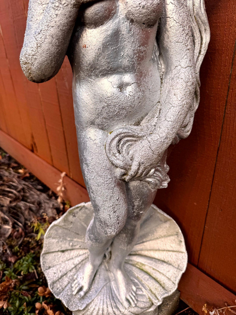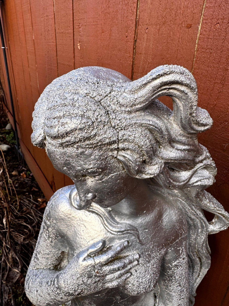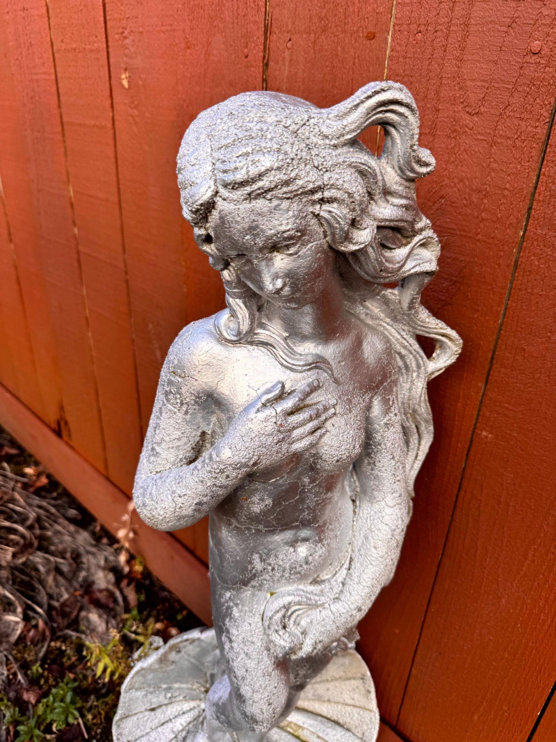 Silver Painted Cement Sculpture Venus Botticelli Replica Figure.