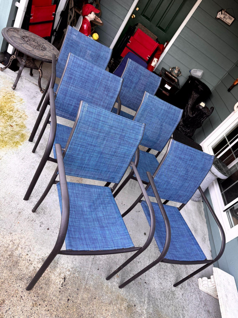 Lot # 186 - Set of 6 Blue Woven Fabric Metal Frame Patio Chairs - Great Condition