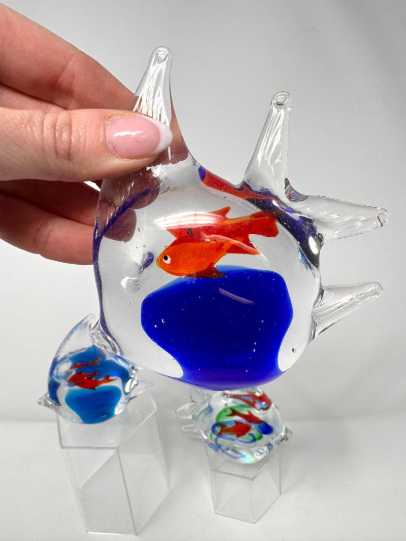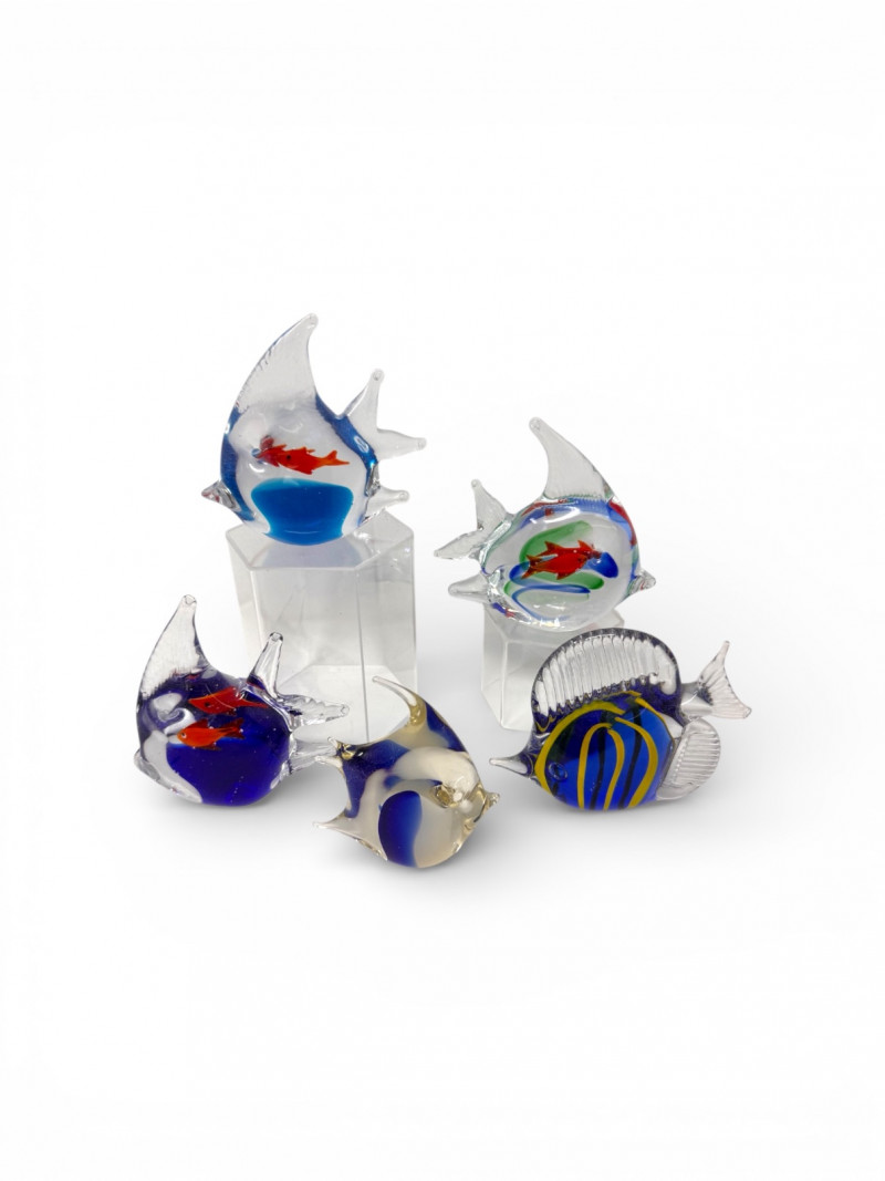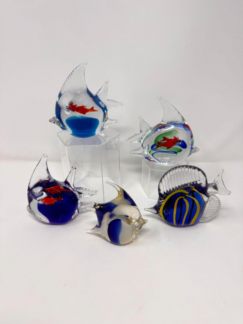 Vibrant Hand Blown Art Glass Fish Sculptures - 5pc.