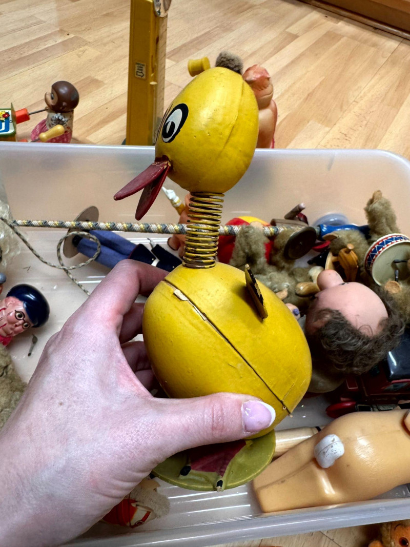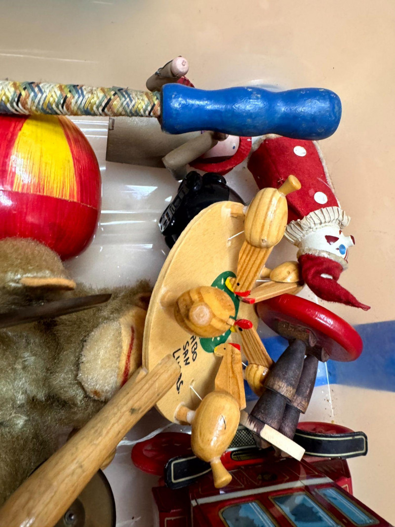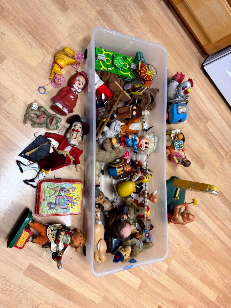 Large Vintage Tin & Rubber Toy Collection Bin 1940s–1950s & More.