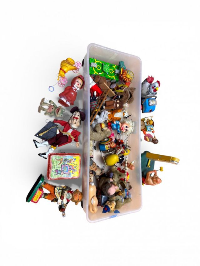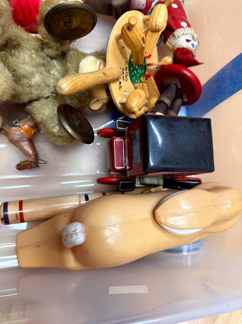 Lot # 199 - Large Vintage Tin & Rubber Toy Collection Bin 1940s–1950s & More
