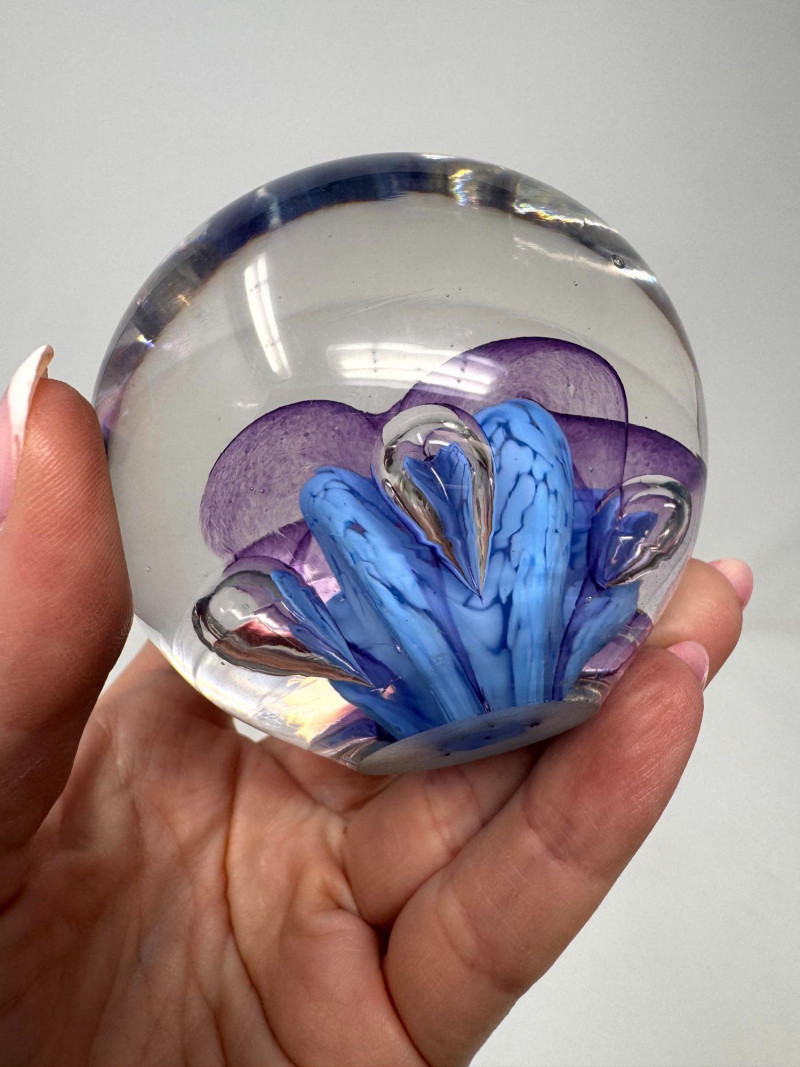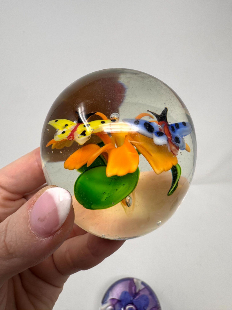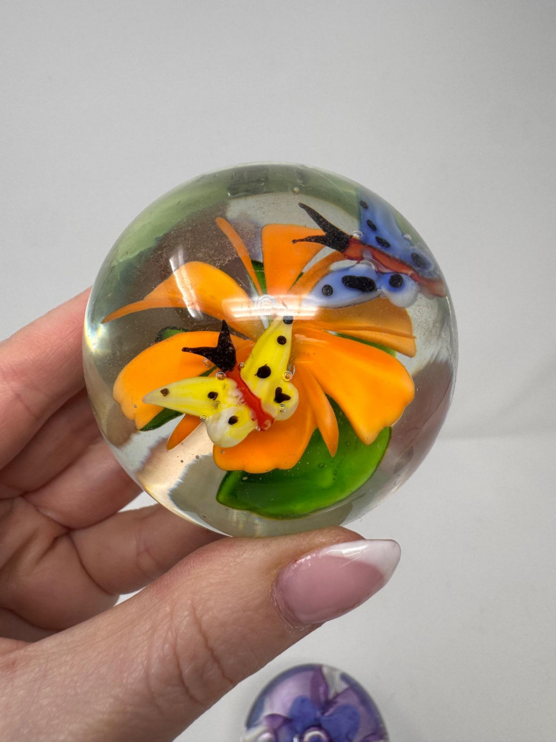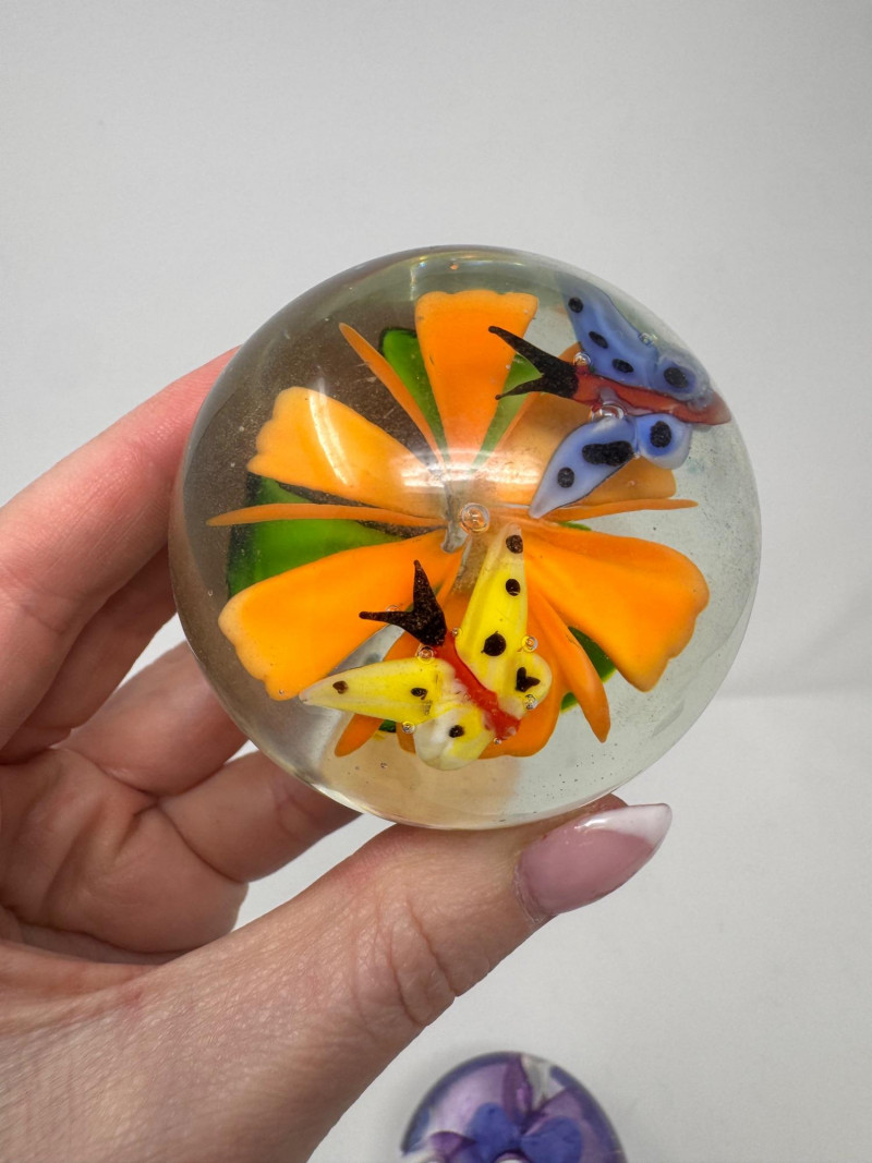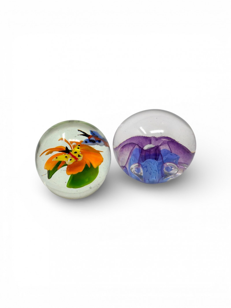 Lot # 200 - Hand Blown Art Glass Floral Paperweights Pair