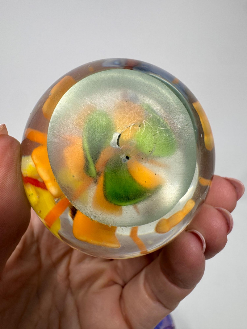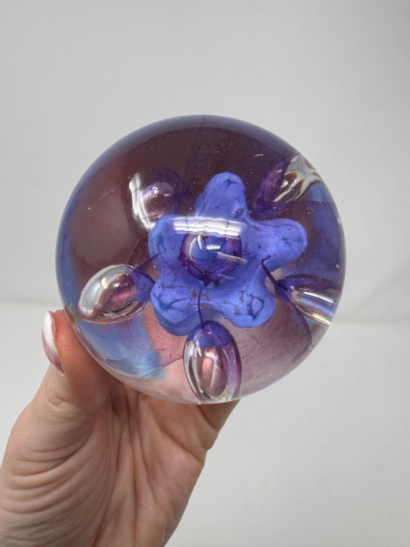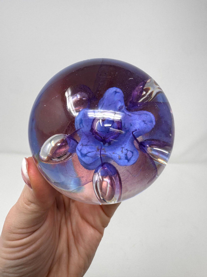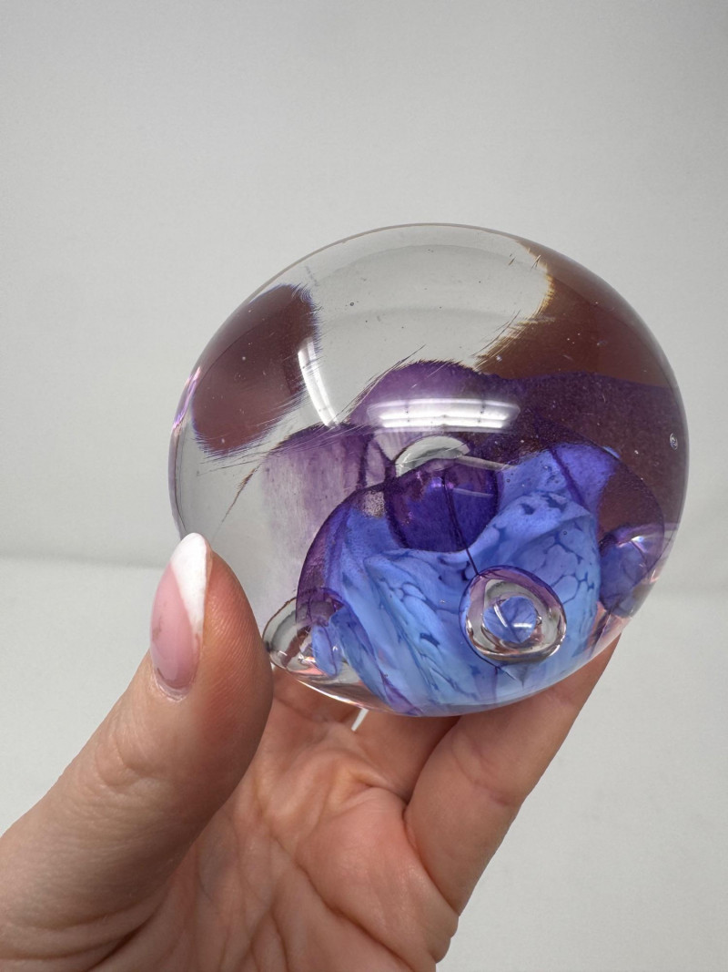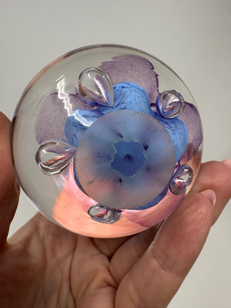 Lot # 200 - Hand Blown Art Glass Floral Paperweights Pair