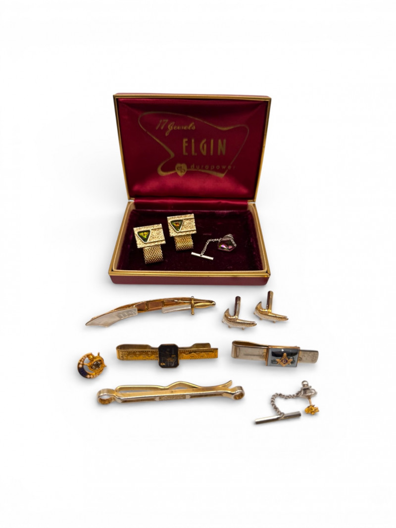 Vintage Men’s Cufflinks & Tie Bars – Elgin, Snap-On, Swank, Masonic +