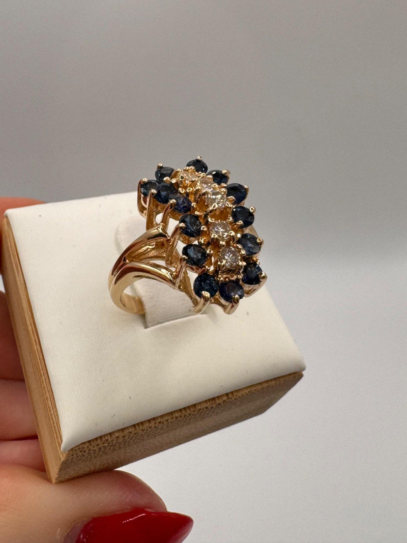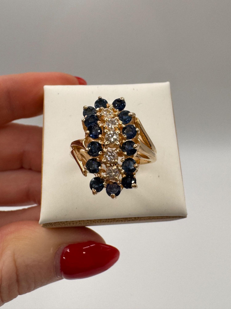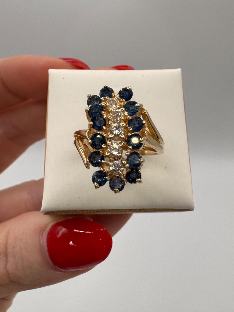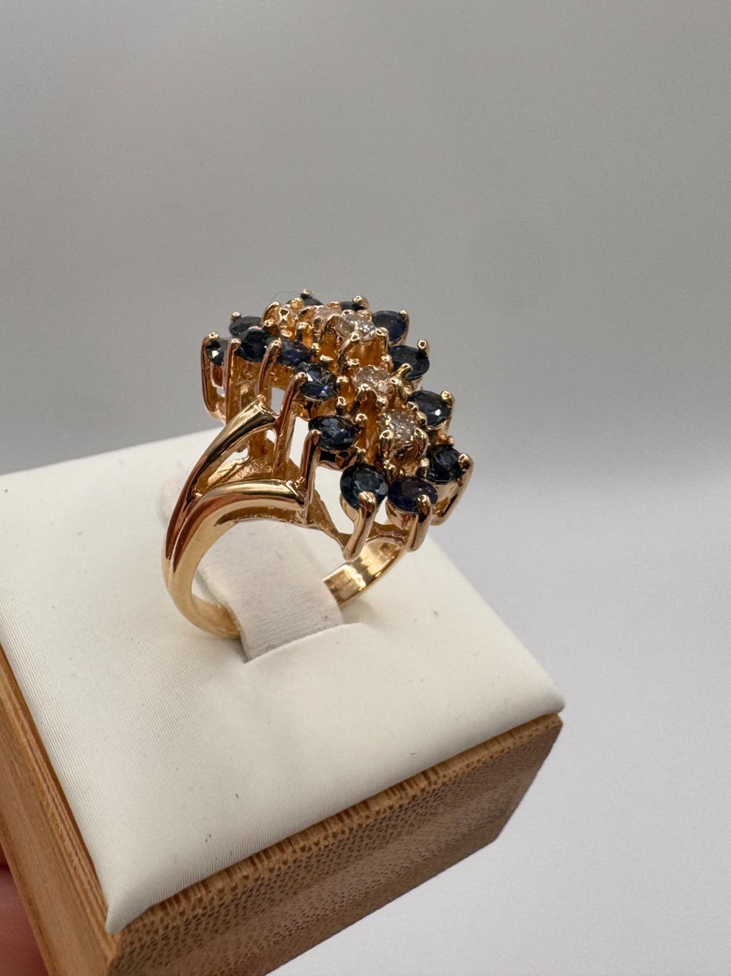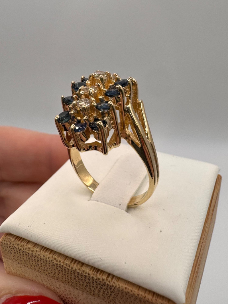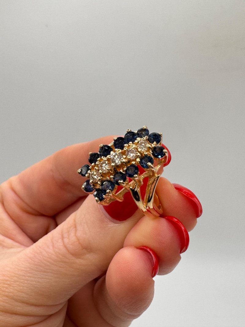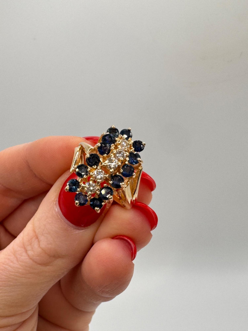 14K Gold Diamond & Sapphire Cluster Ring 6.78g.