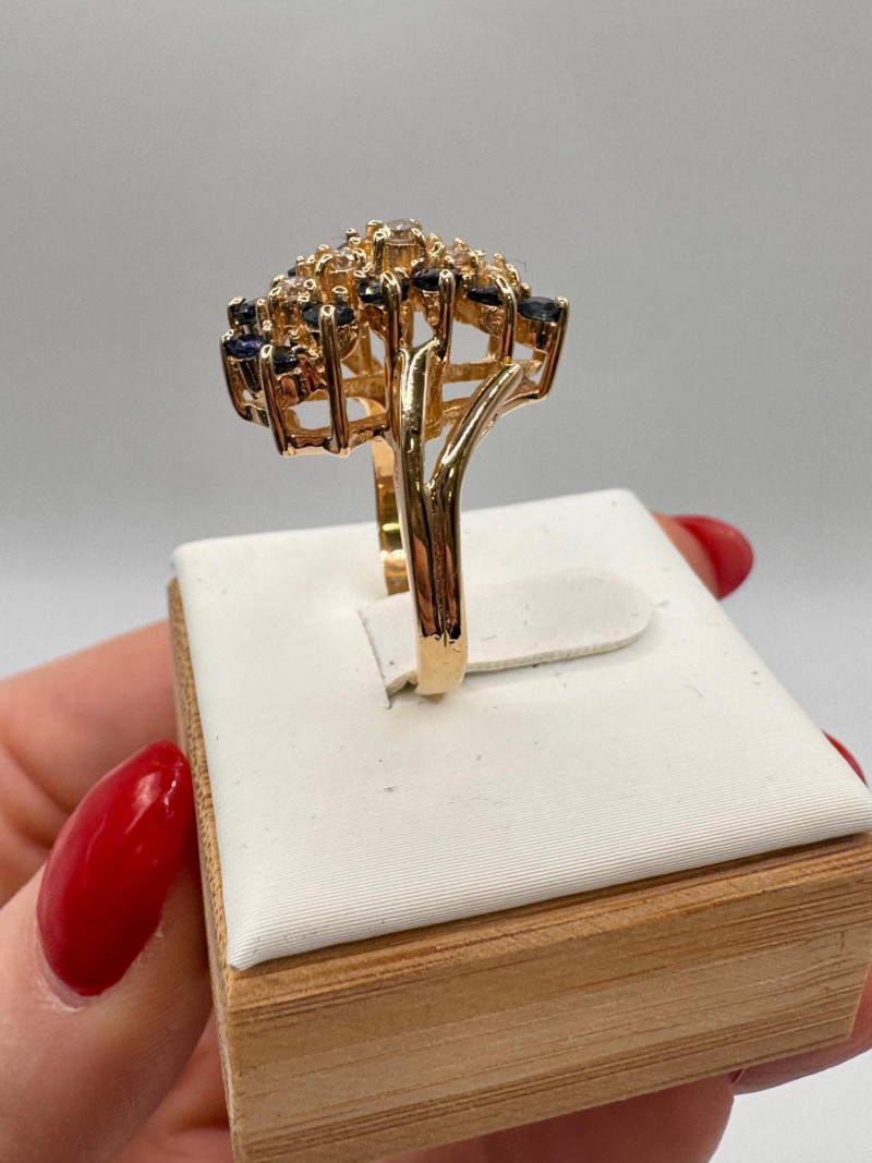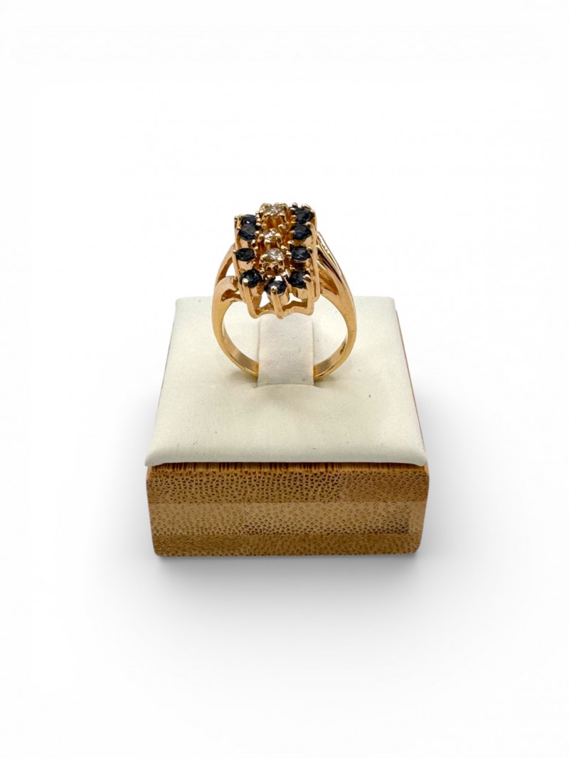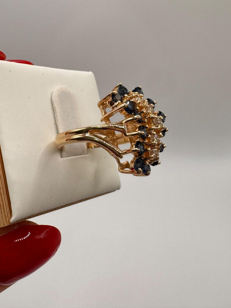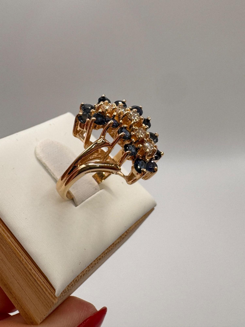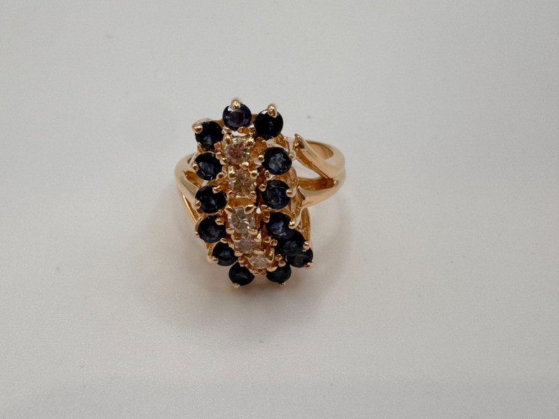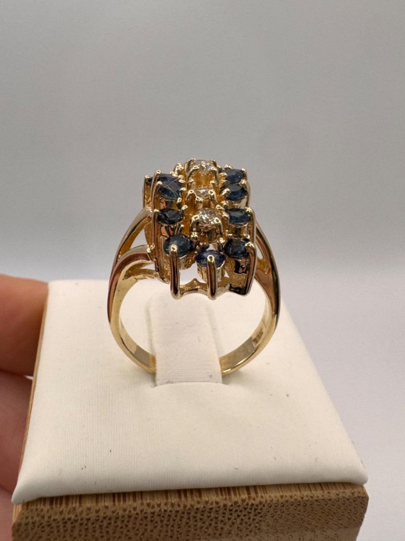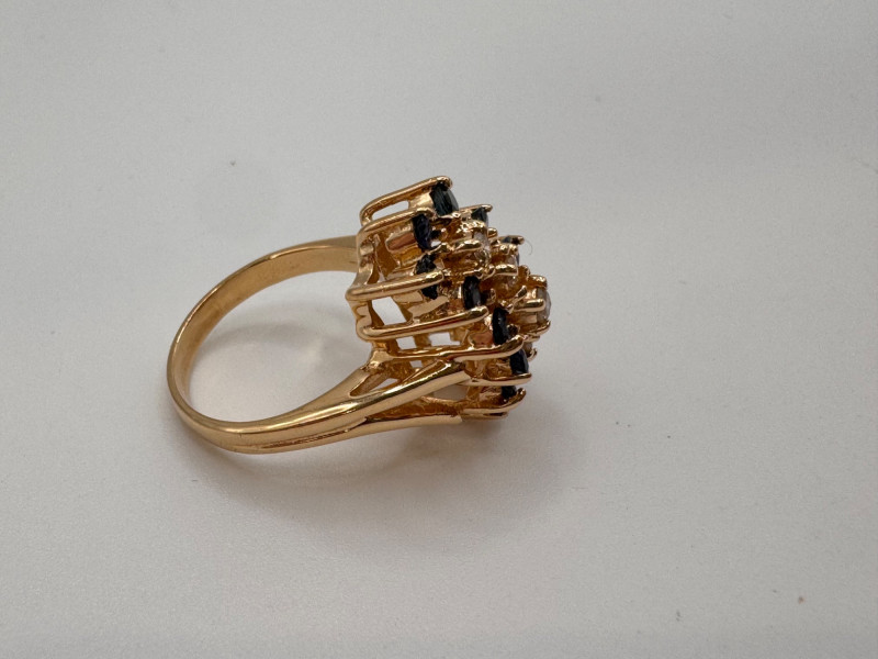 14K Gold Diamond & Sapphire Cluster Ring 6.78g.