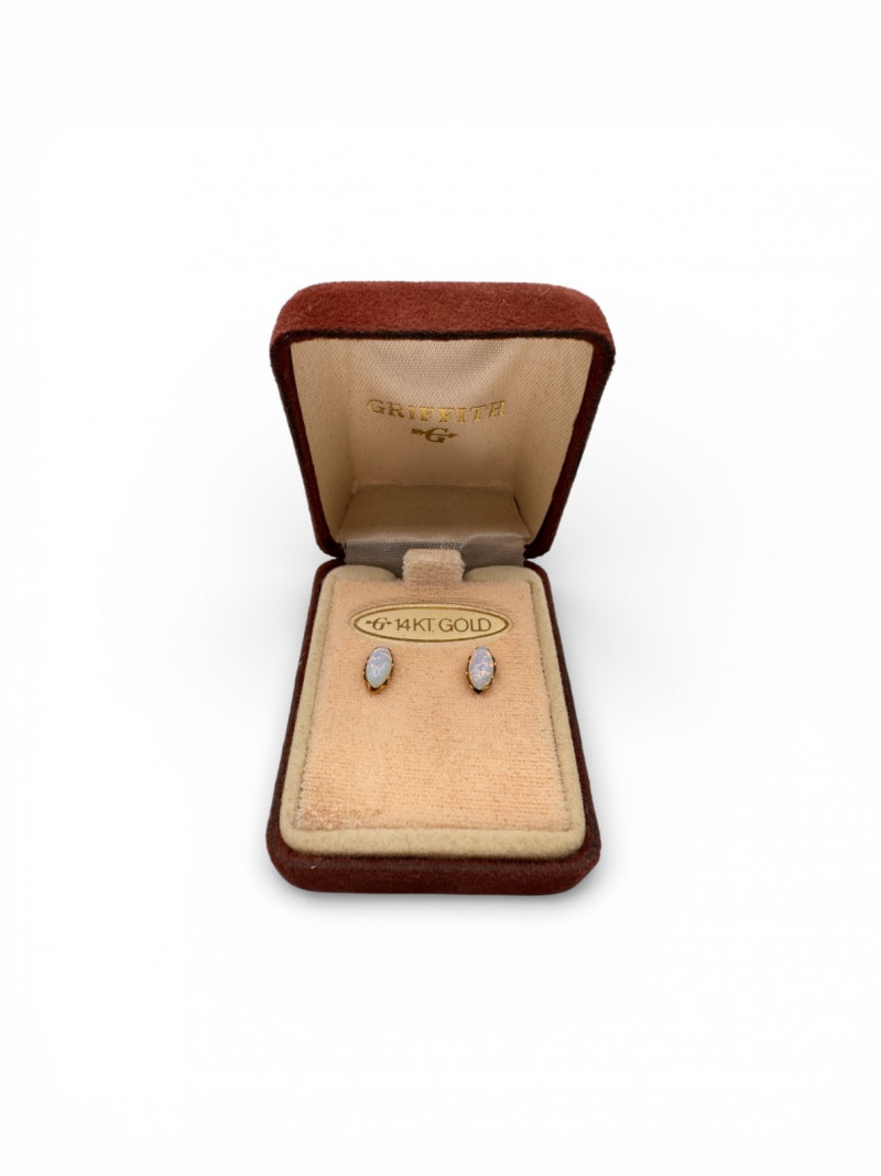 14K Gold & Marquise-Shaped Opal Stud Earrings w/ Original Box.