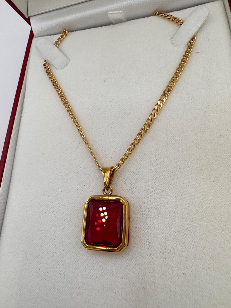 Eva Marie Saint Synthetic Ruby Sterling Necklace 72.6g.