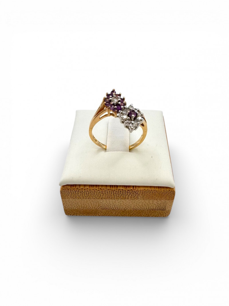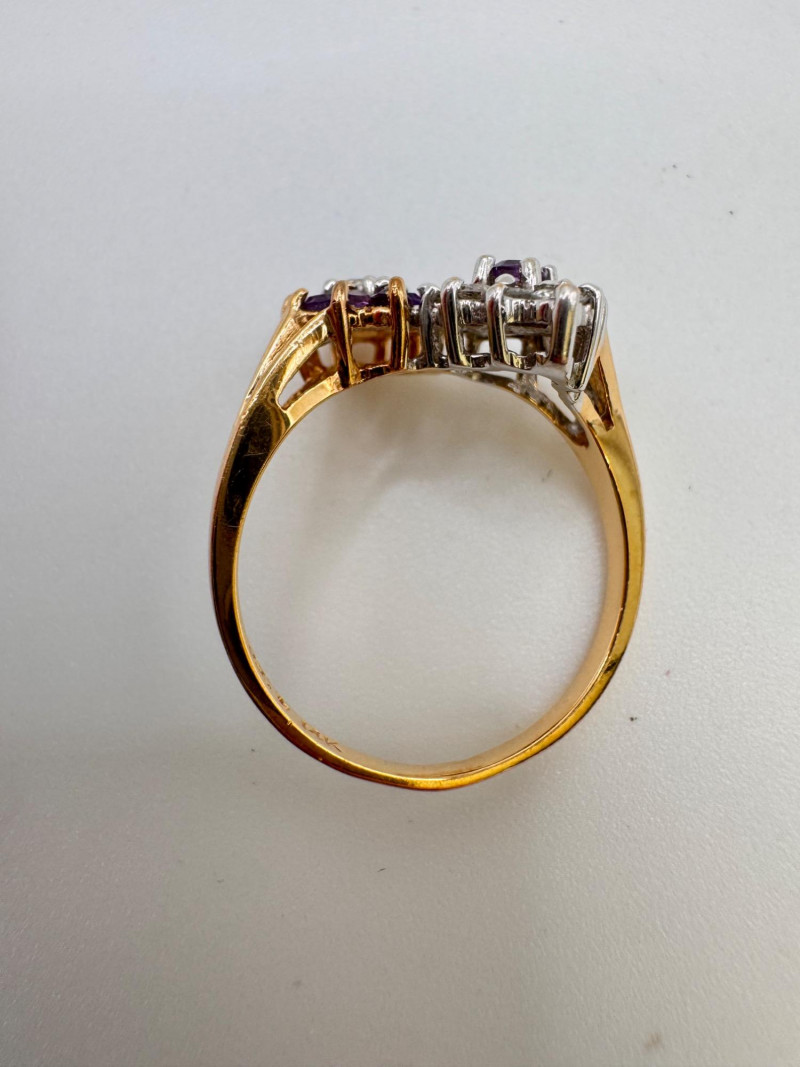 Lot # 6 - 14K Gold Amethyst & Diamond Two Cluster Ring 2.49g