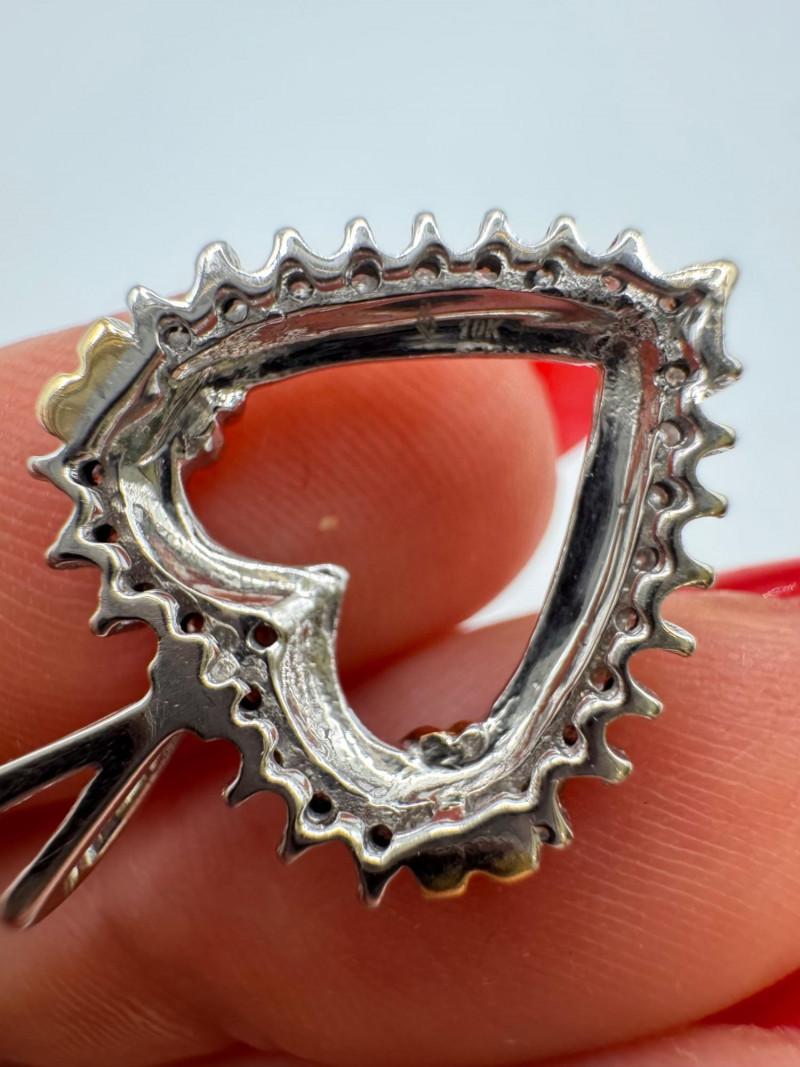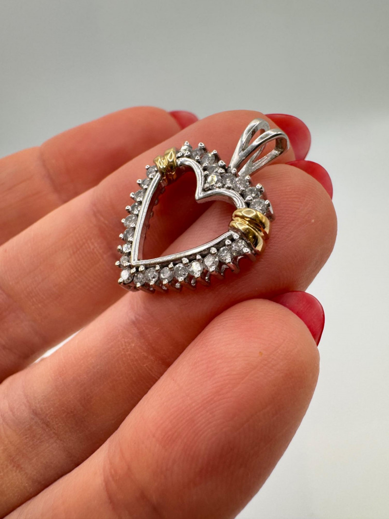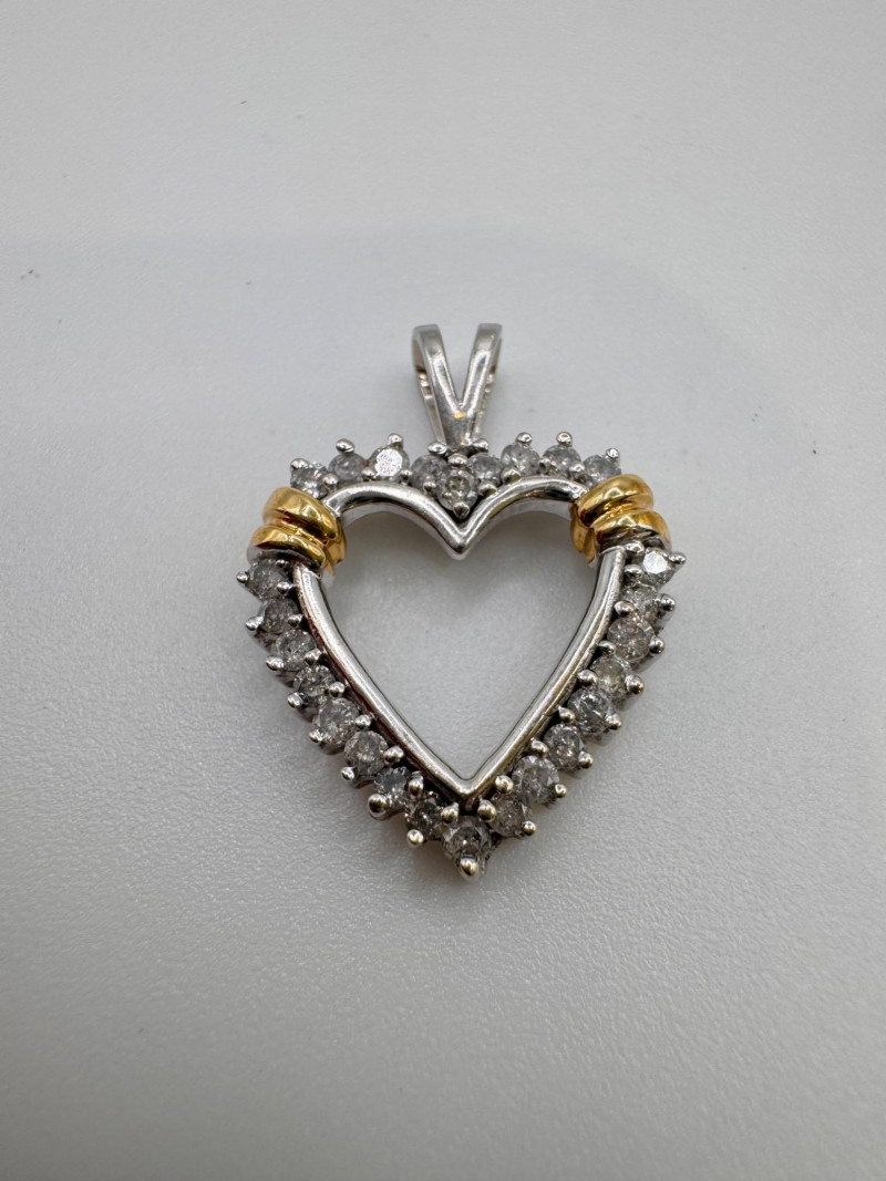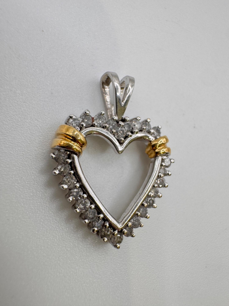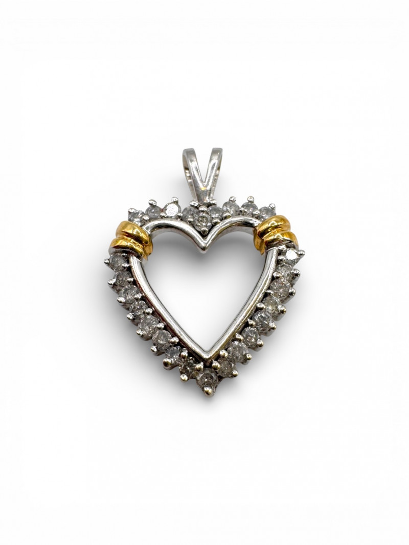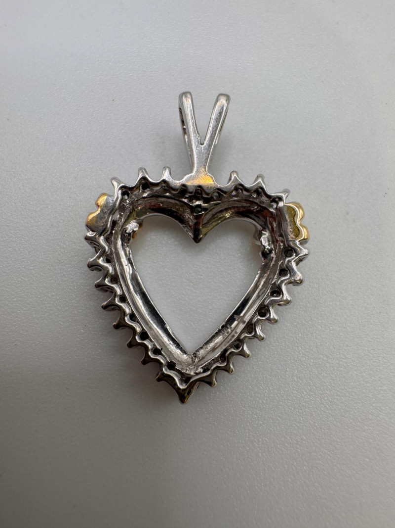 10K Two-Tone Gold Diamond Heart Pendant 2.58g.