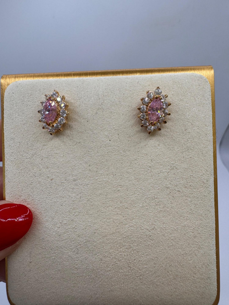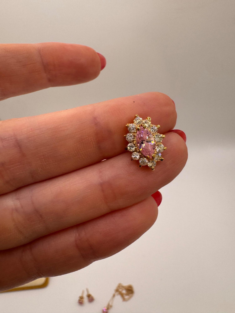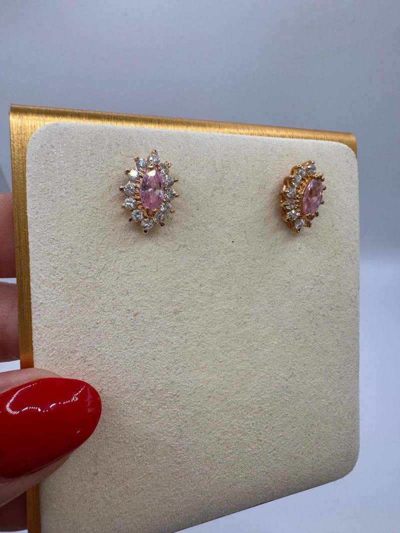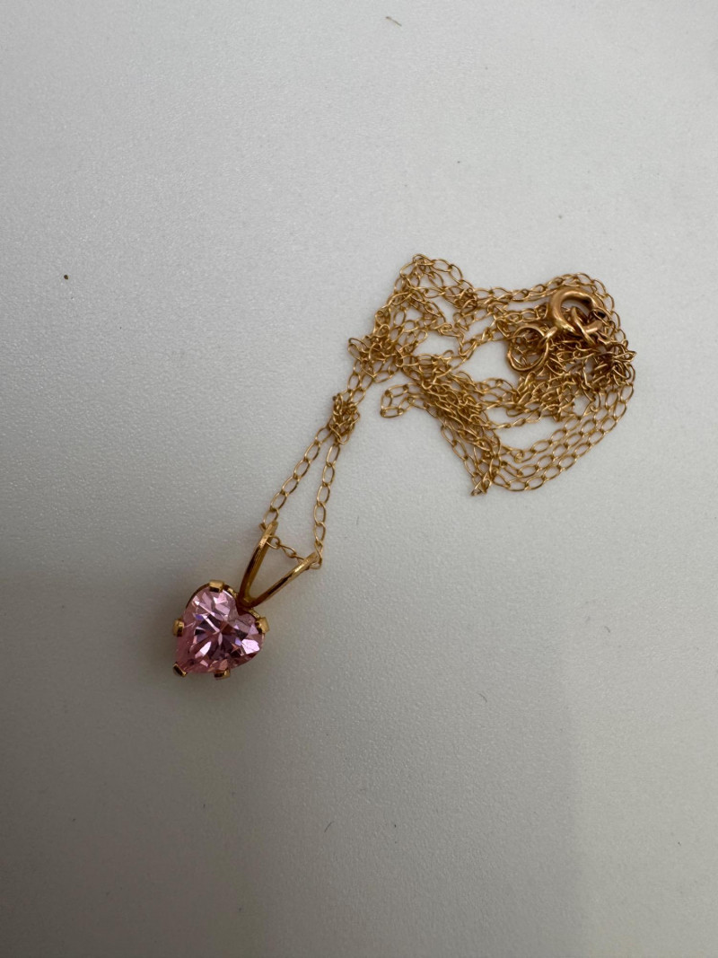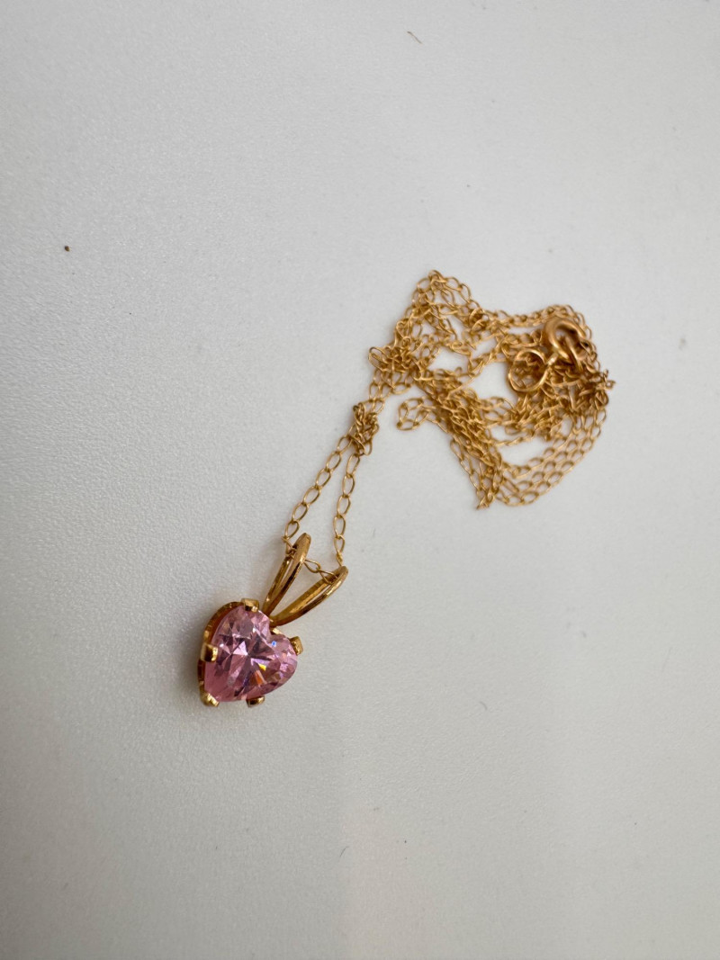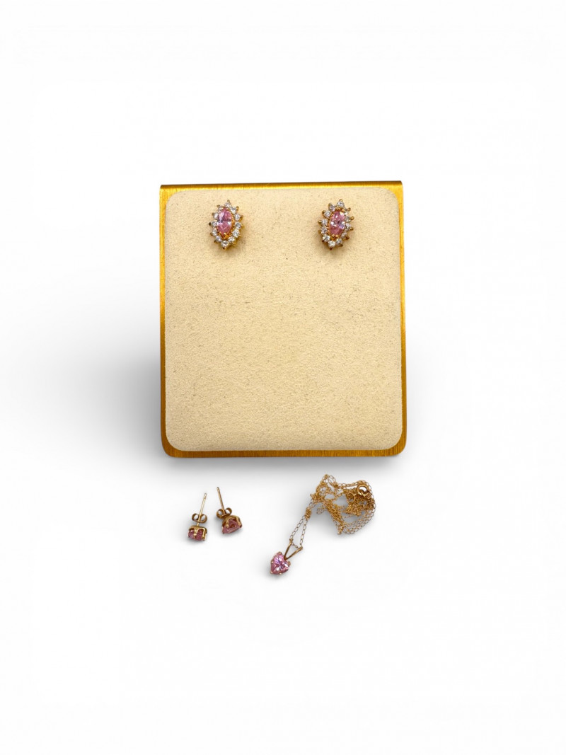 14K Gold Pink Gem Necklace & Studs, Sterling Earrings 1.48g