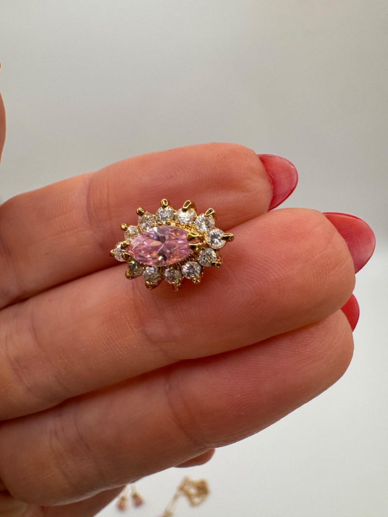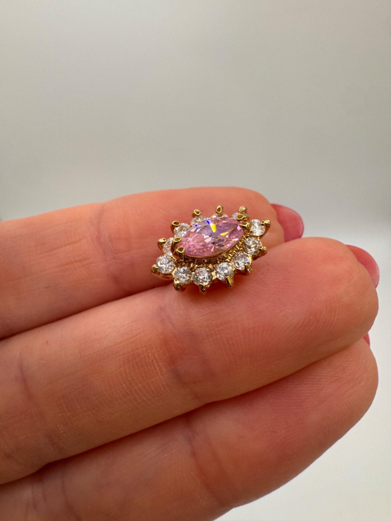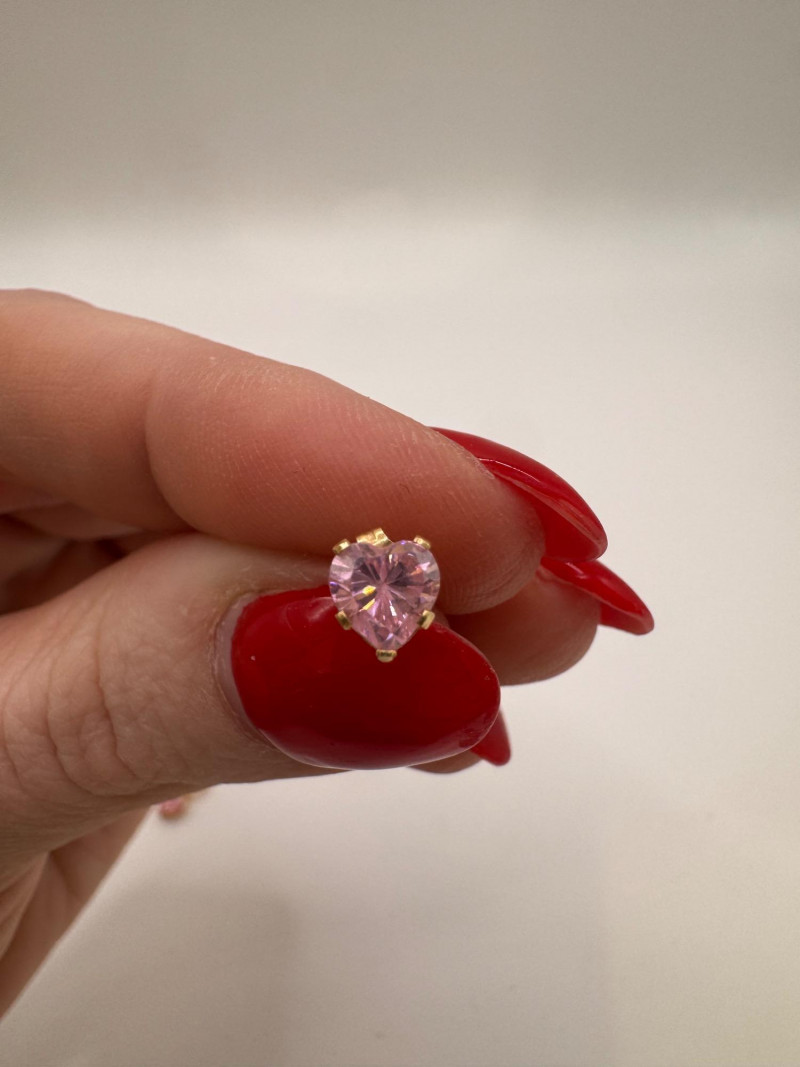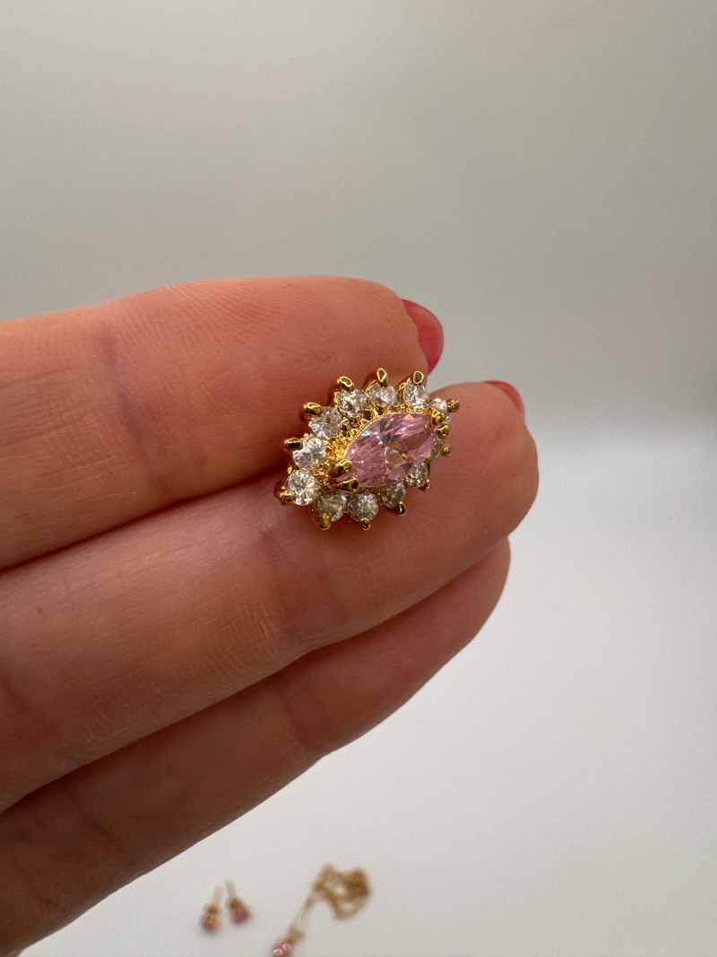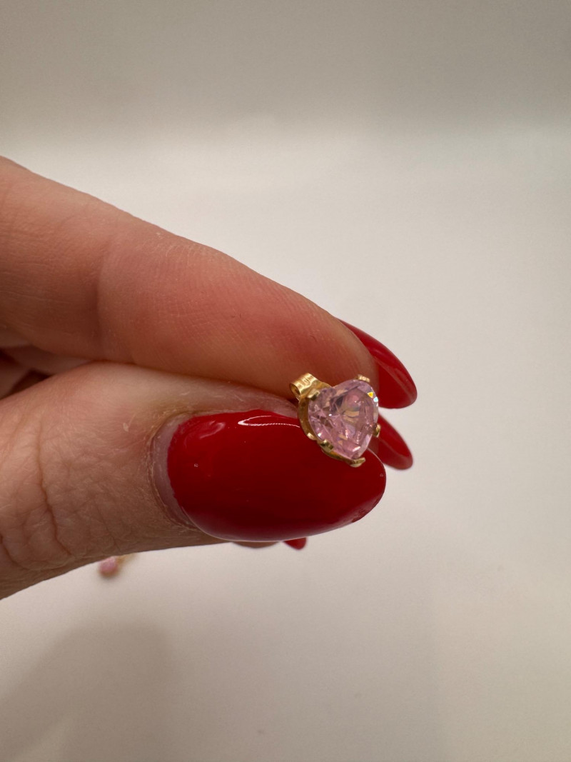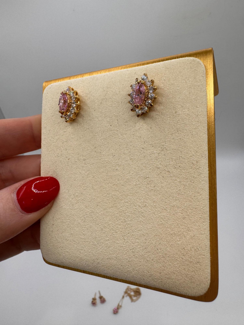 14K Gold Pink Gem Necklace & Studs, Sterling Earrings 1.48g