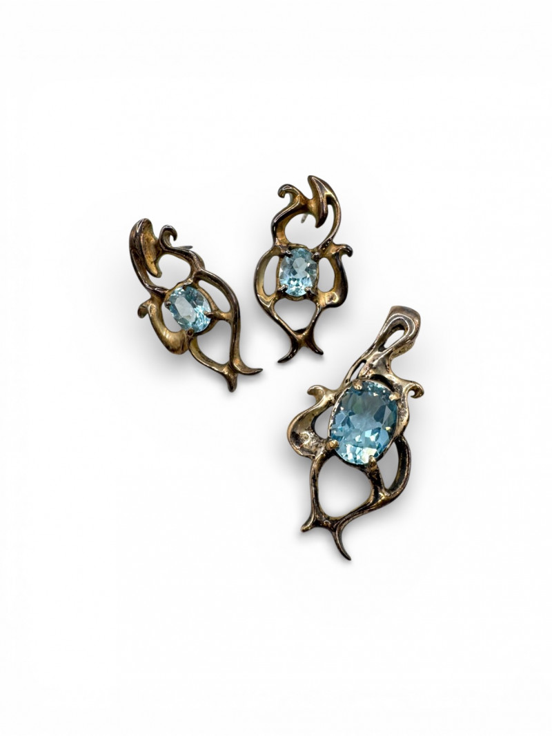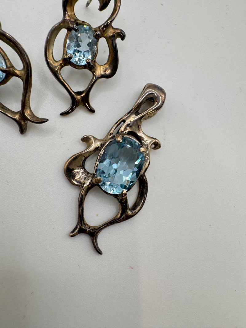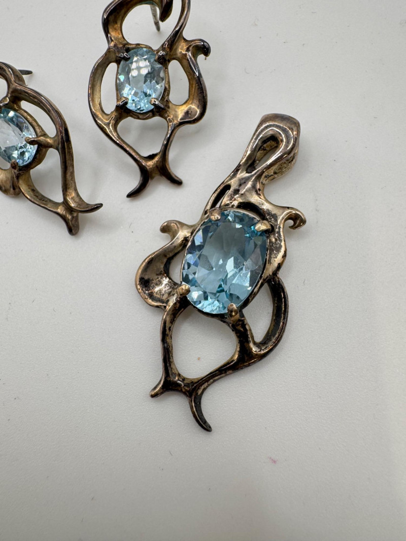 Lot # 19 - Brutalist Sterling Silver Blue Topaz Pendant & Earrings Set