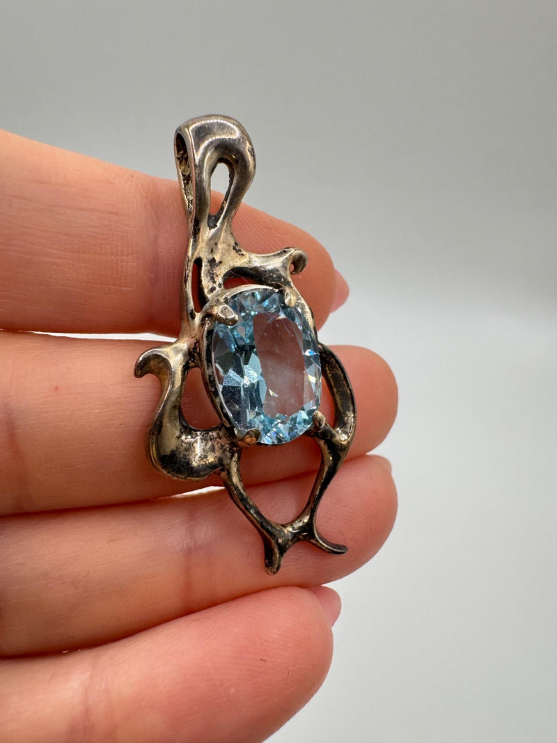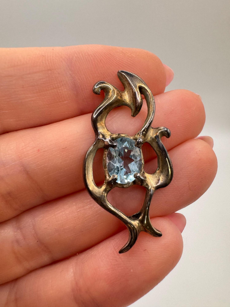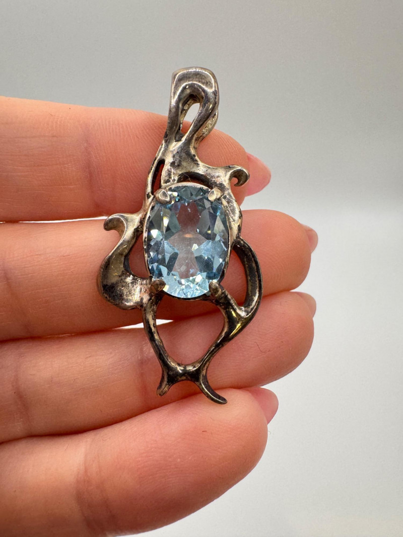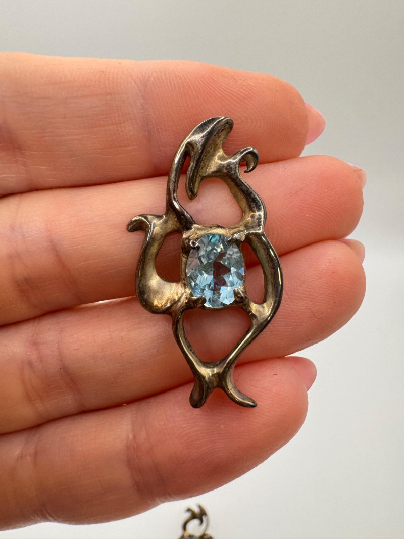 Brutalist Sterling Silver & Blue Topaz Pendant & Earrings Set.