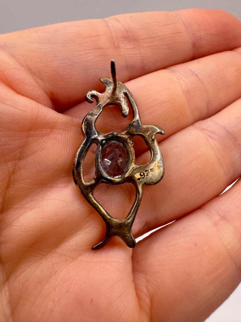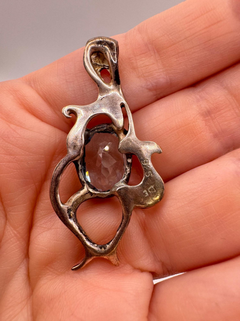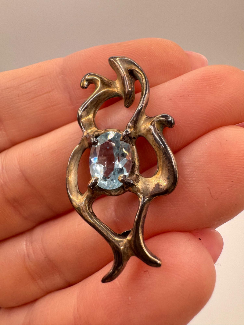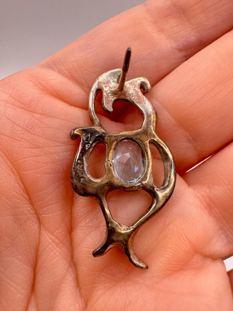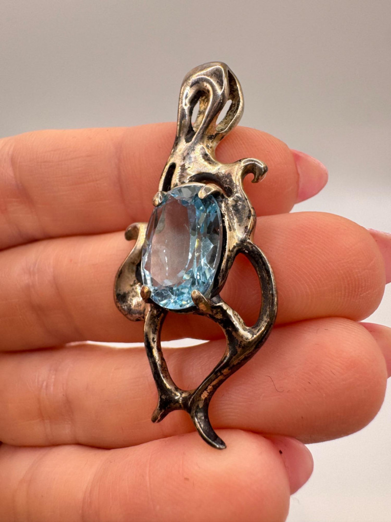 Brutalist Sterling Silver & Blue Topaz Pendant & Earrings Set.
