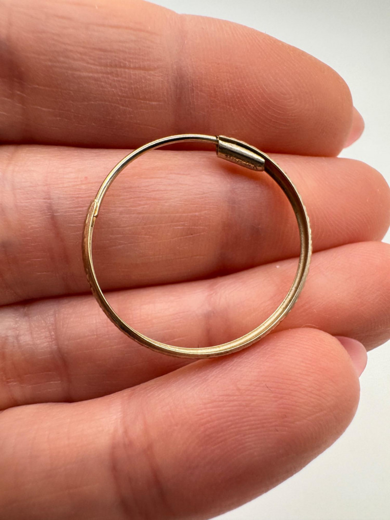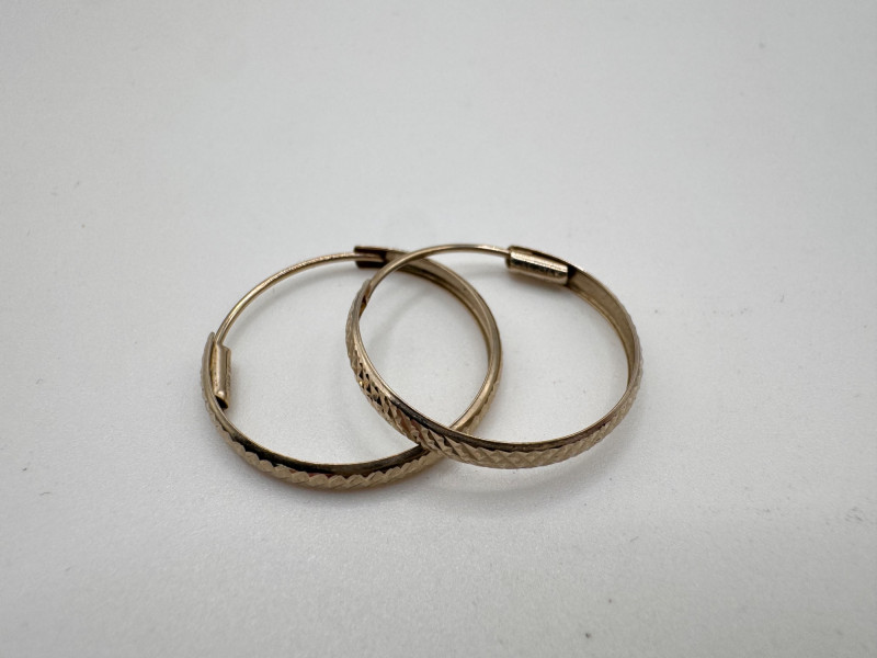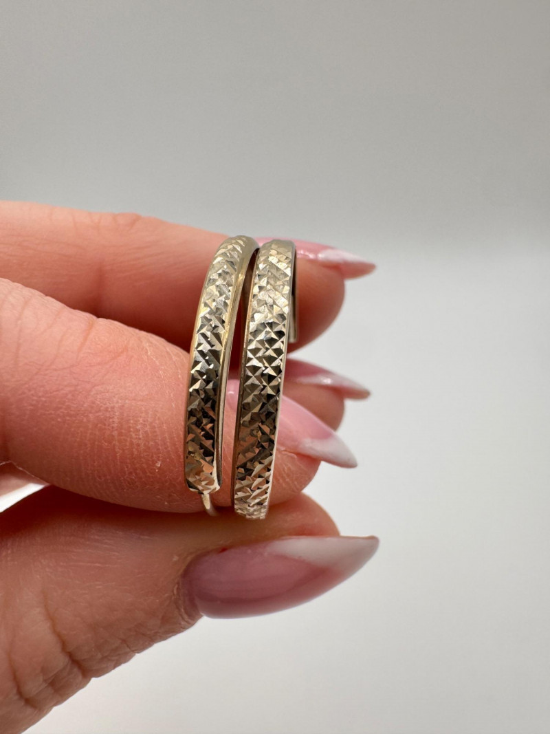 14K White Gold Textured Hoop Earrings - Turkey 1.14g.