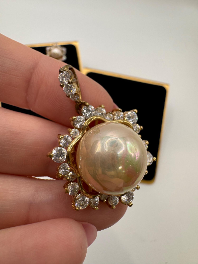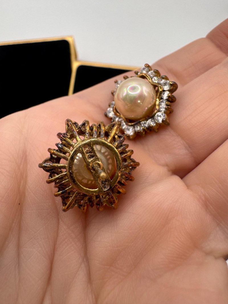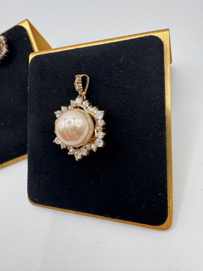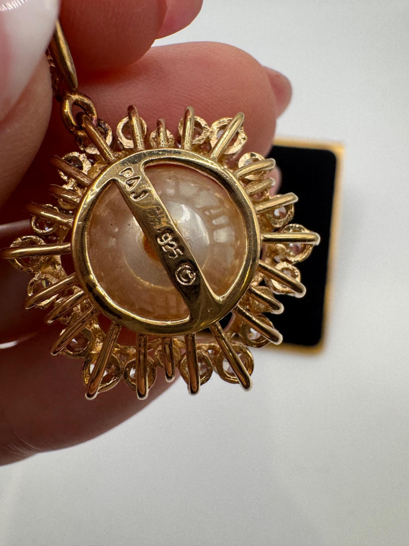 Lot # 24 - Vintage Sterling Gold Tone Pearl Halo Pendant & Stud Earrings Set