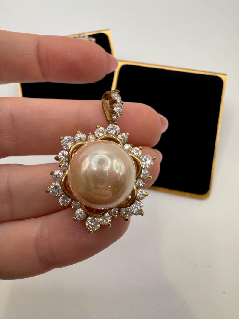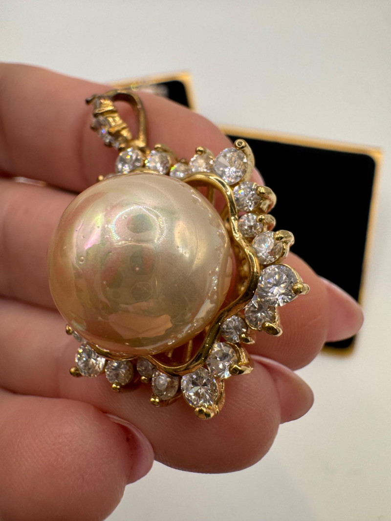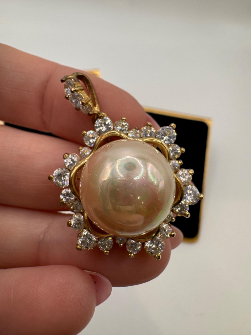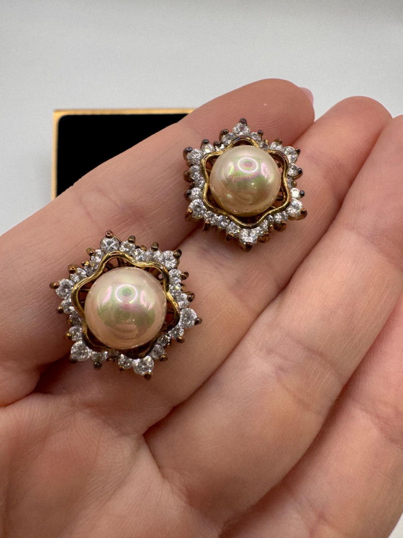Lot # 24 - Vintage Sterling Gold Tone Pearl Halo Pendant & Stud Earrings Set