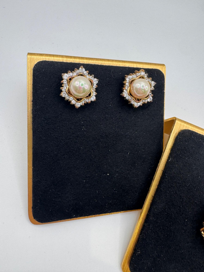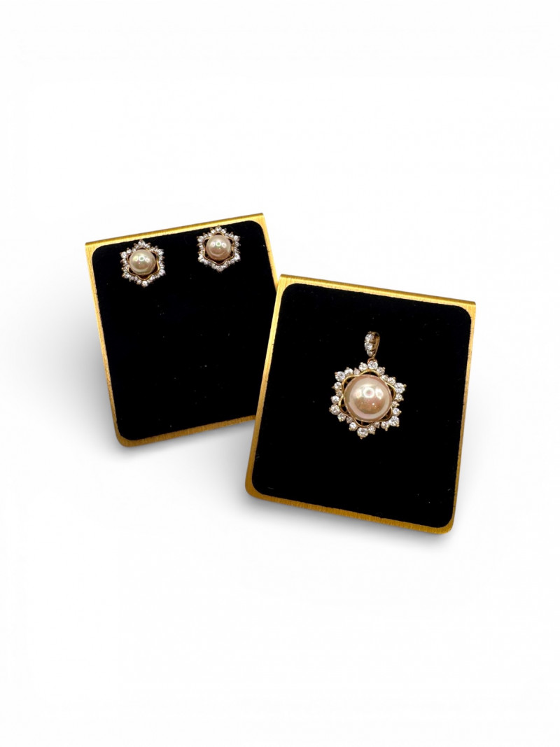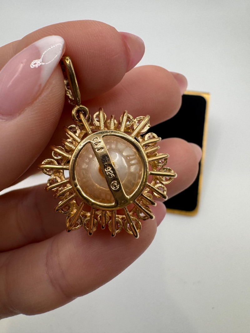Vintage Sterling Gold Tone Pearl Halo Pendant & Stud Earrings Set.