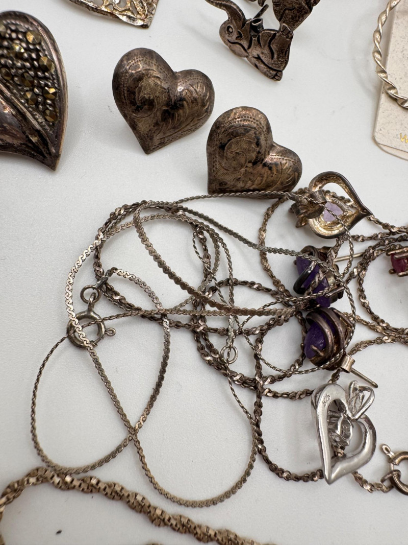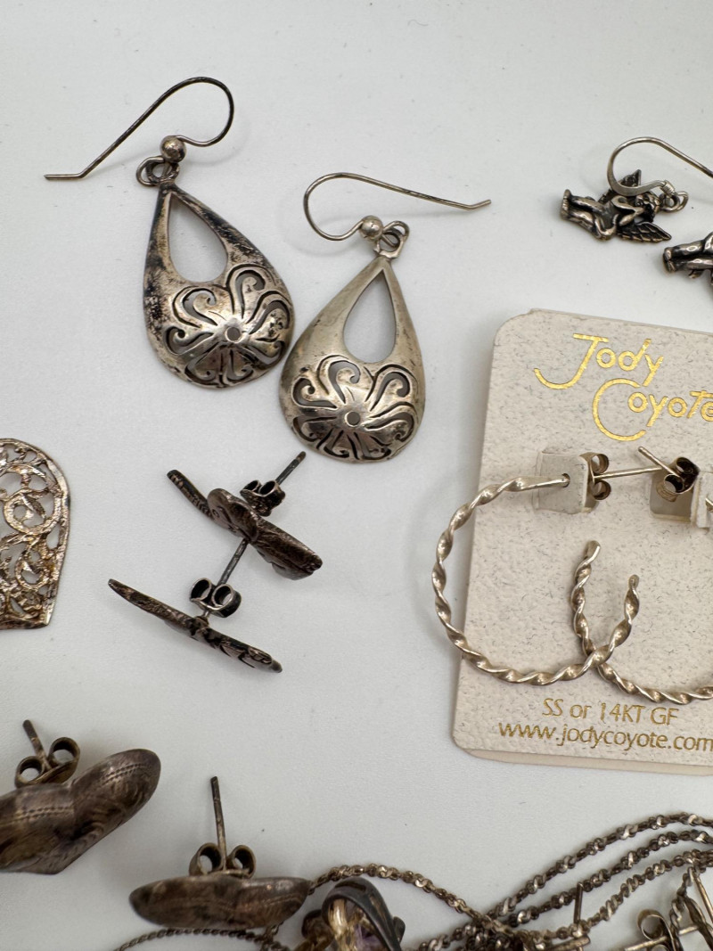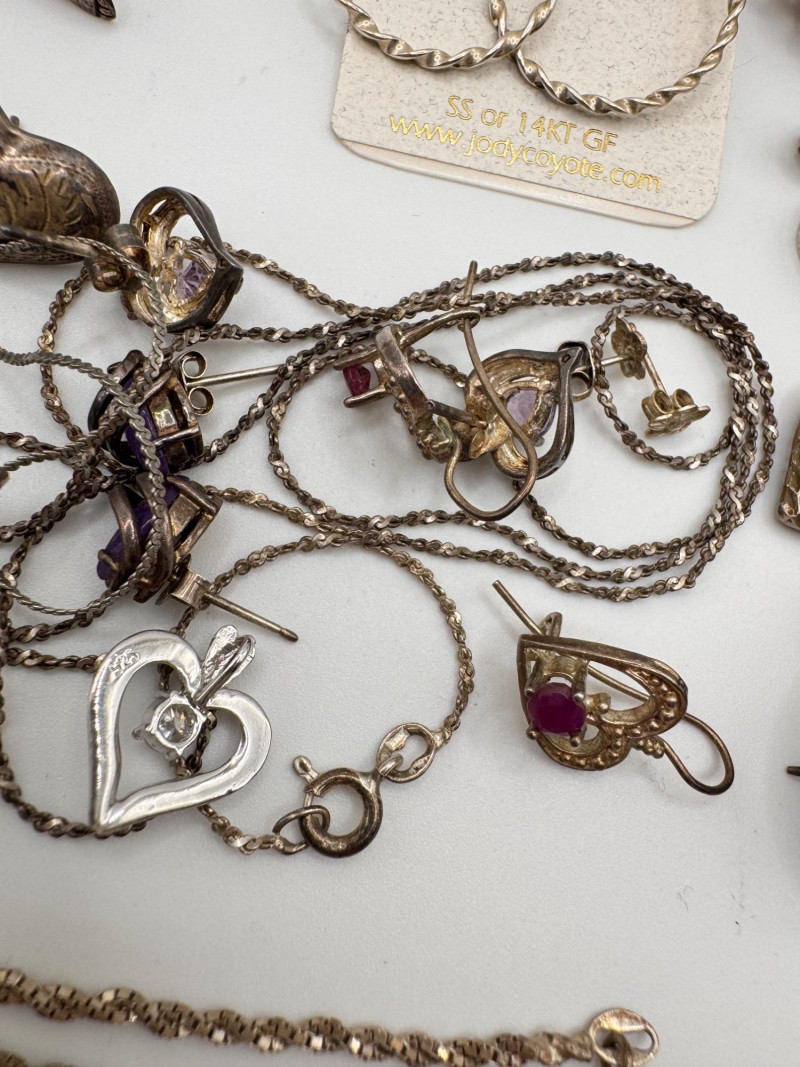 Lot # 31 - Large Sterling Mixed Jewelry - Earrings, Chains & Pendants 62.23g