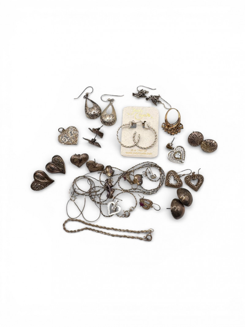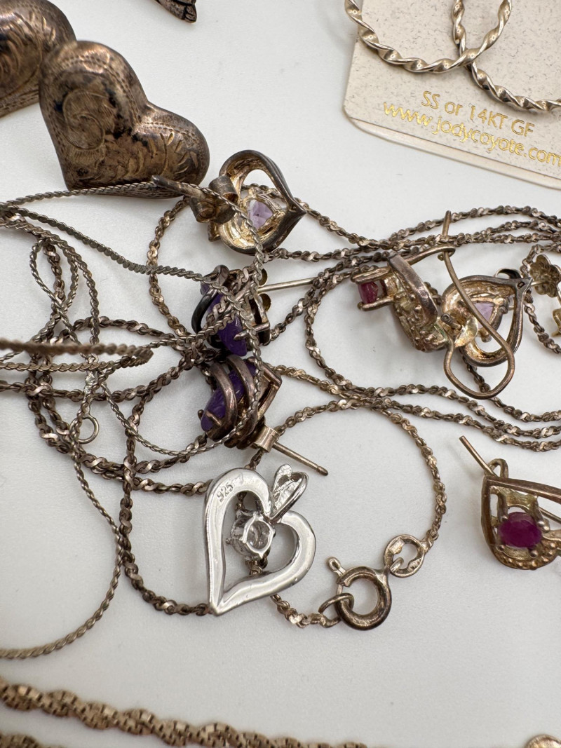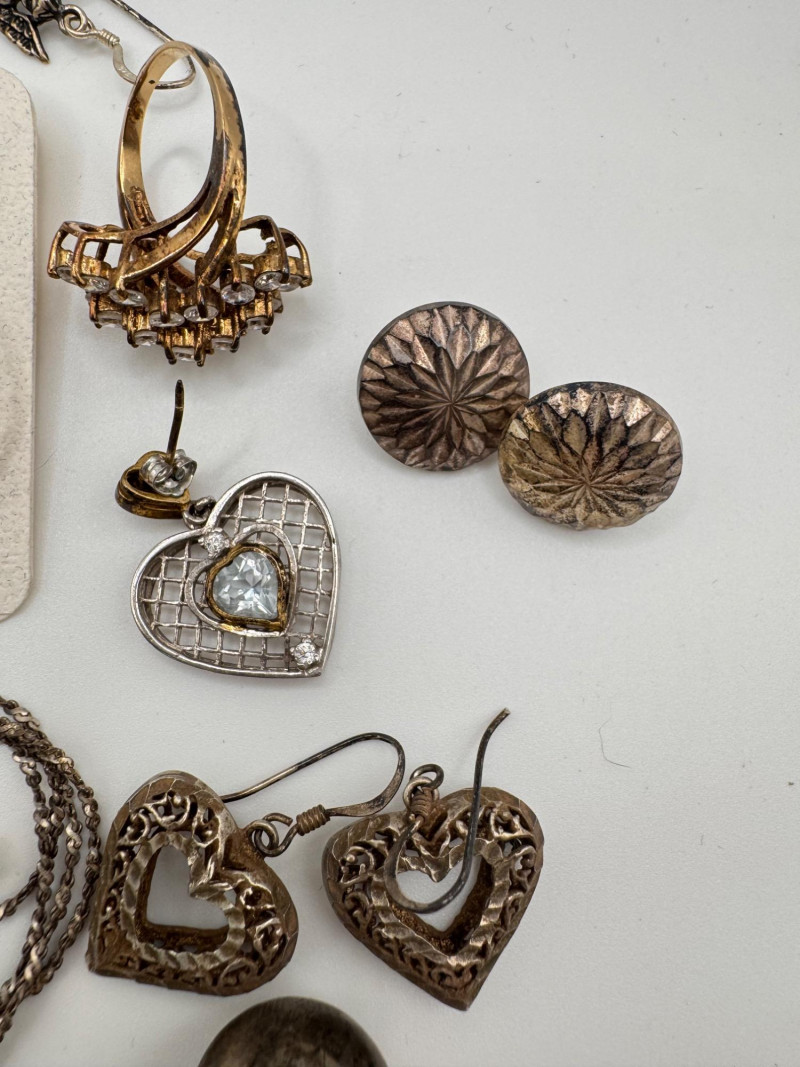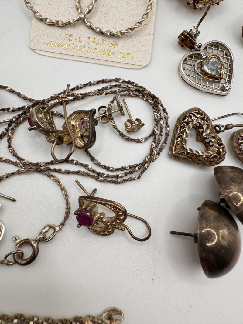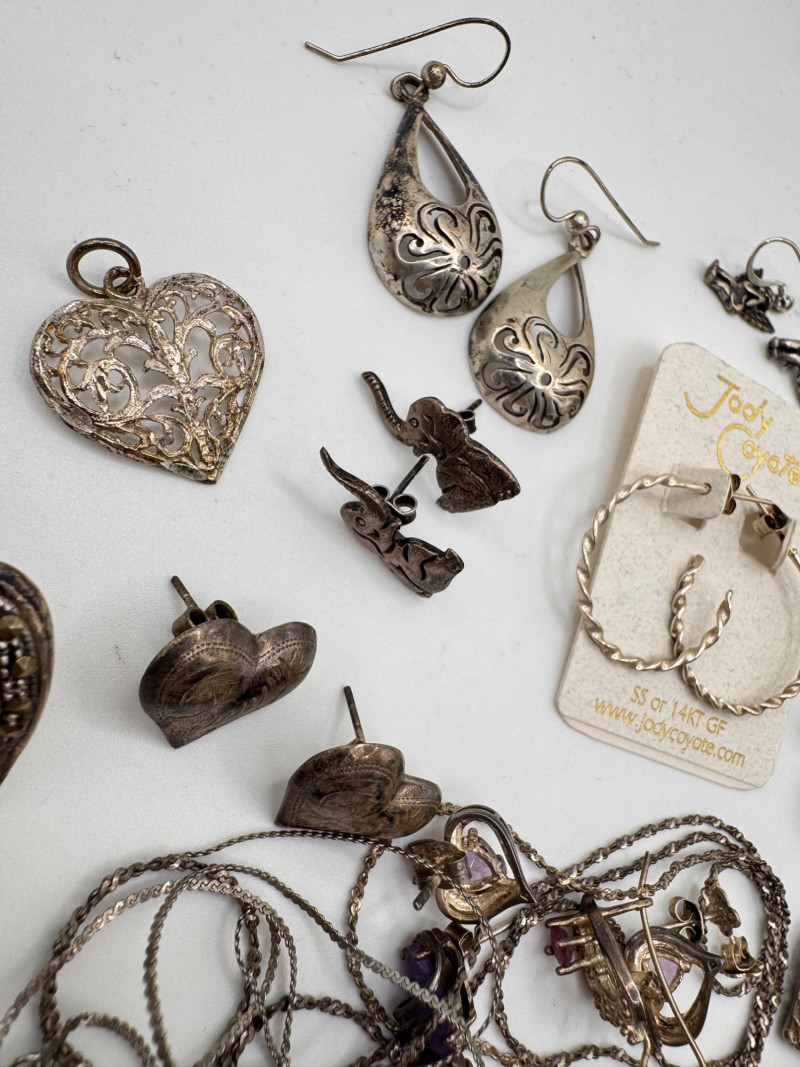 Large Sterling Mixed Jewelry - Earrings, Chains & Pendants 62.23g.
