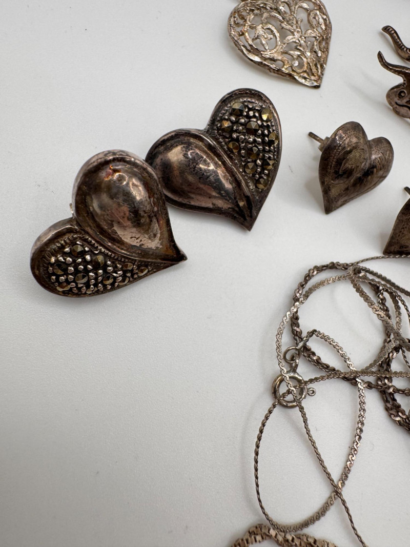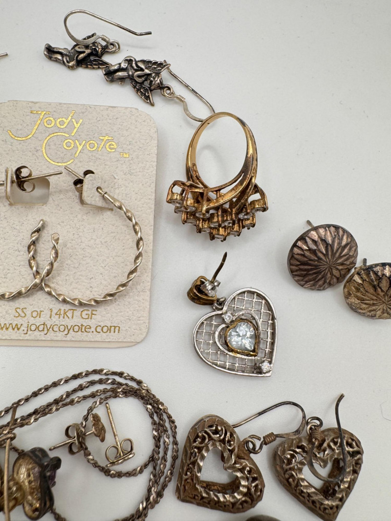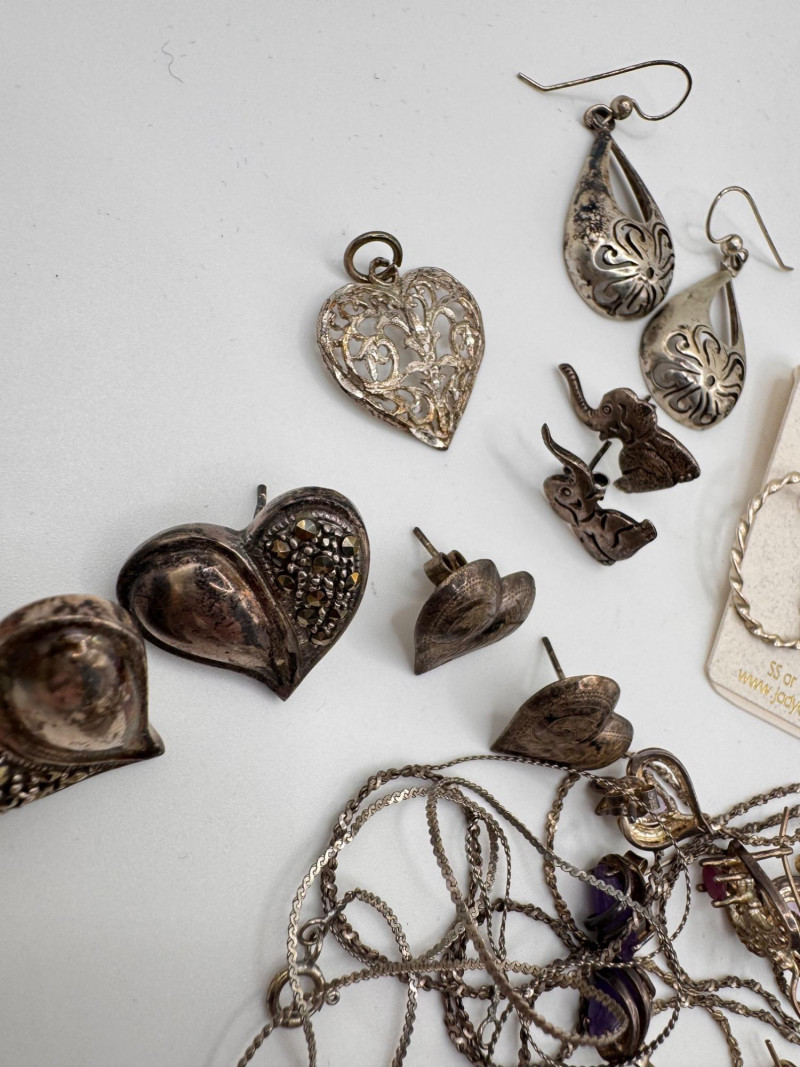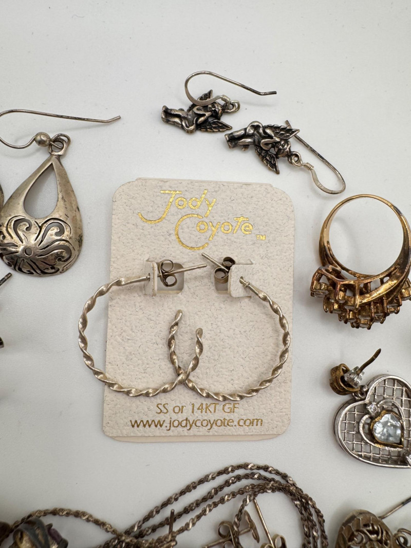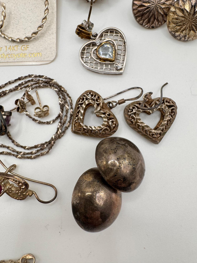 Large Sterling Mixed Jewelry - Earrings, Chains & Pendants 62.23g.