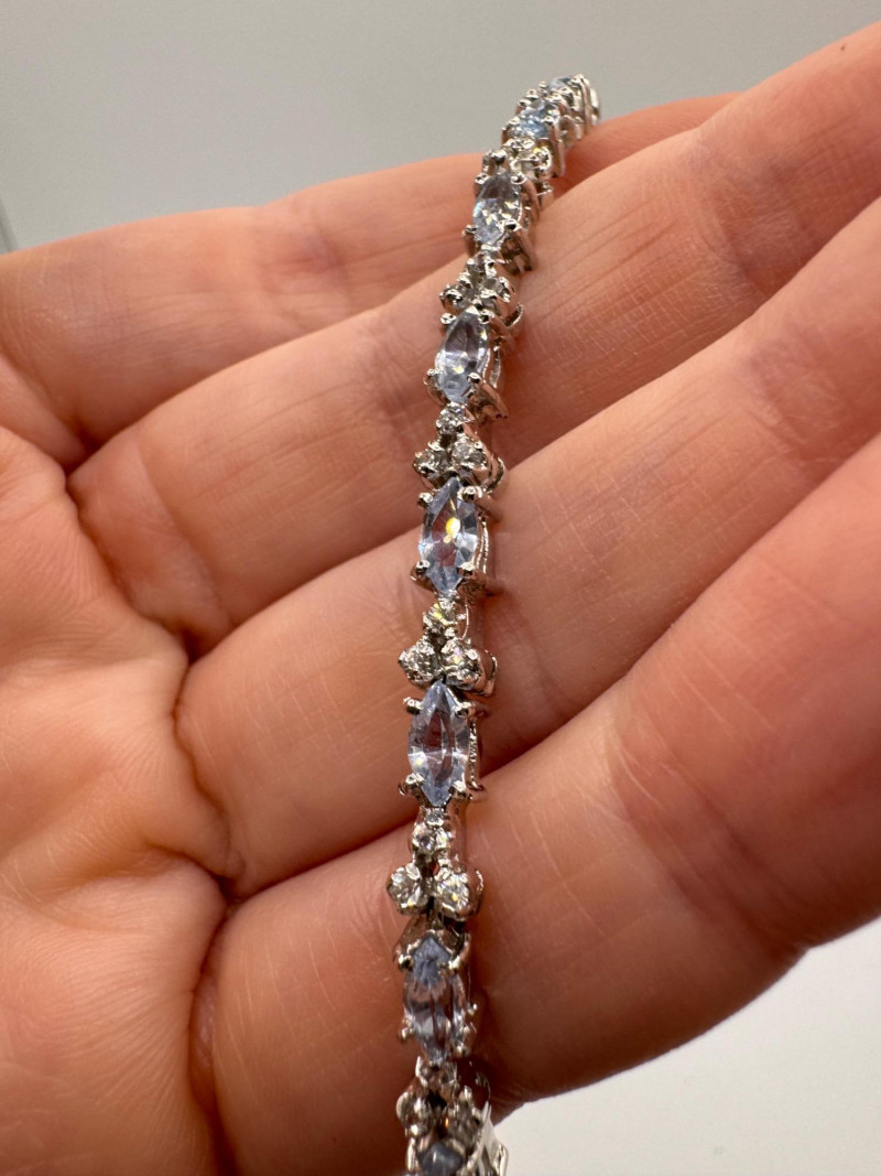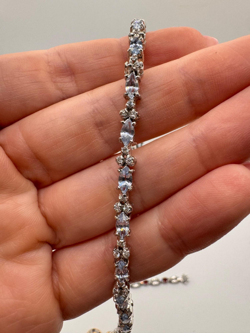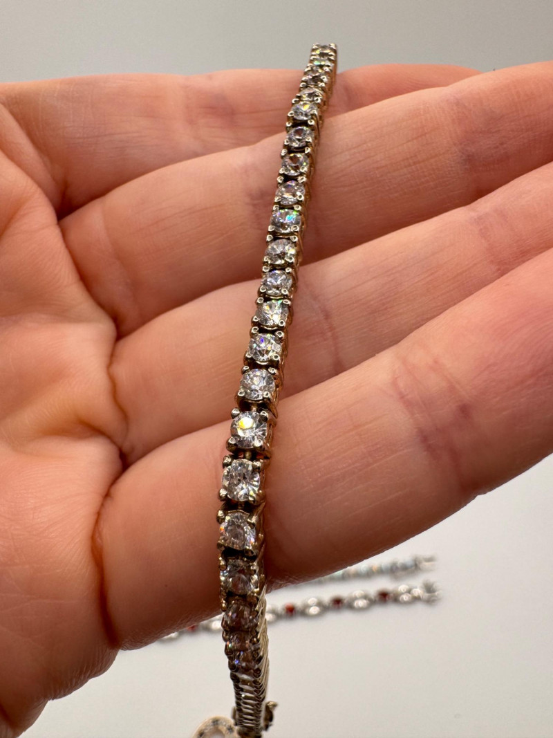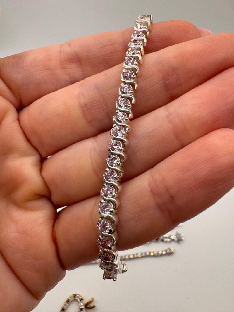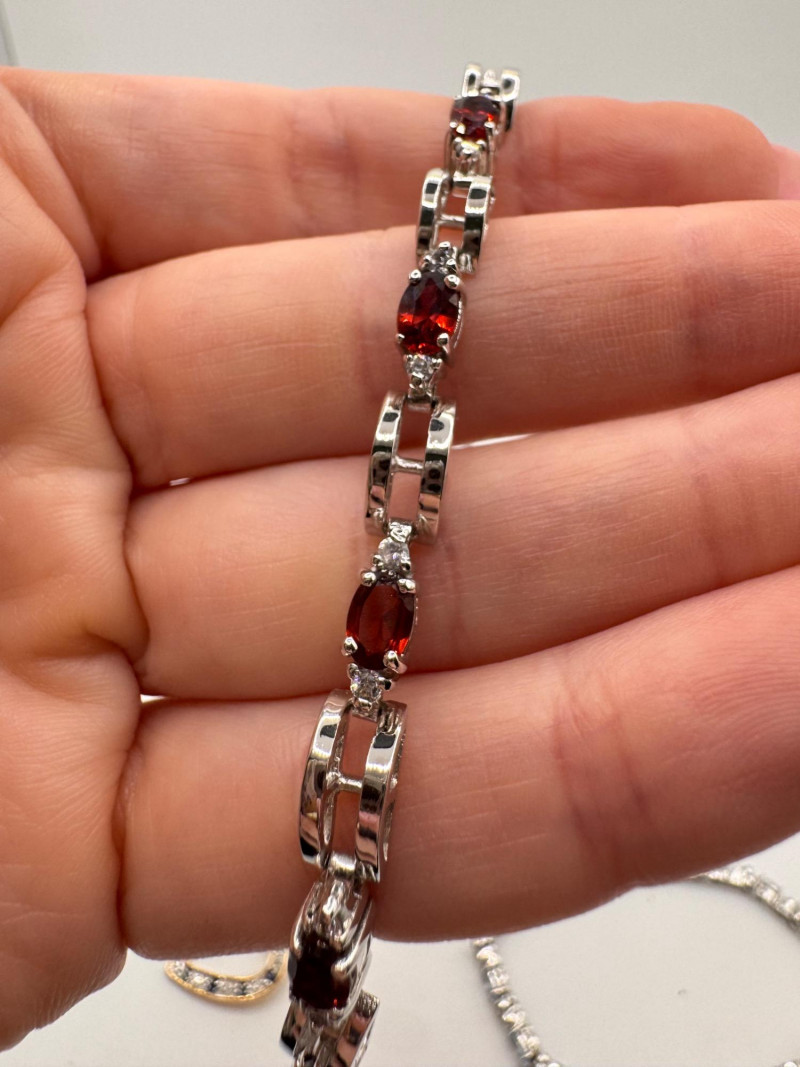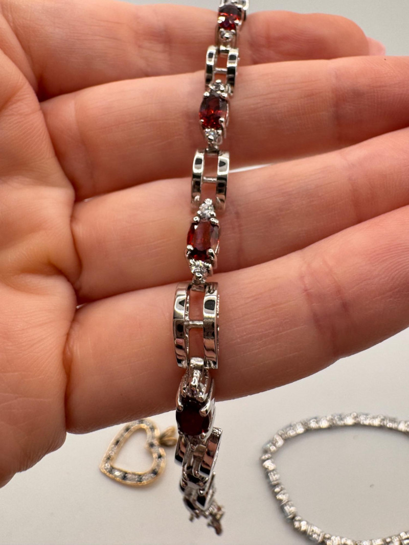 Sterling Silver Garnet & CZ Tennis Bracelets + Diamond Sapphire Heart 57.19g.