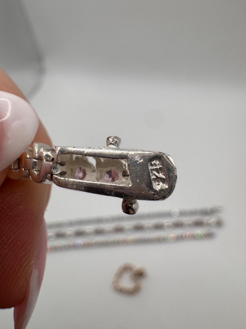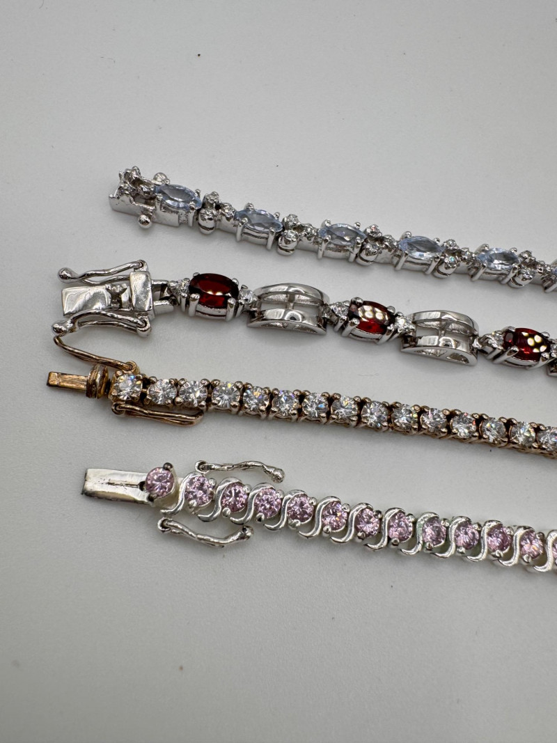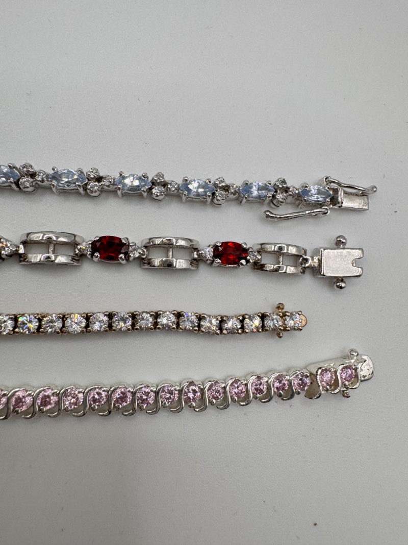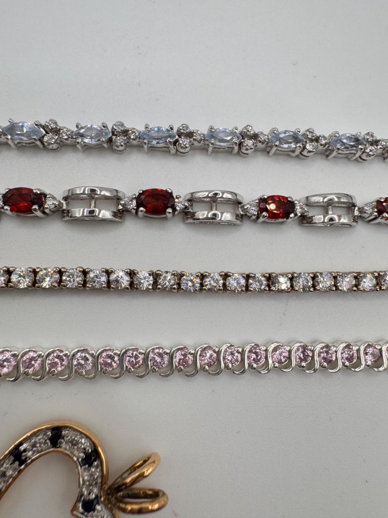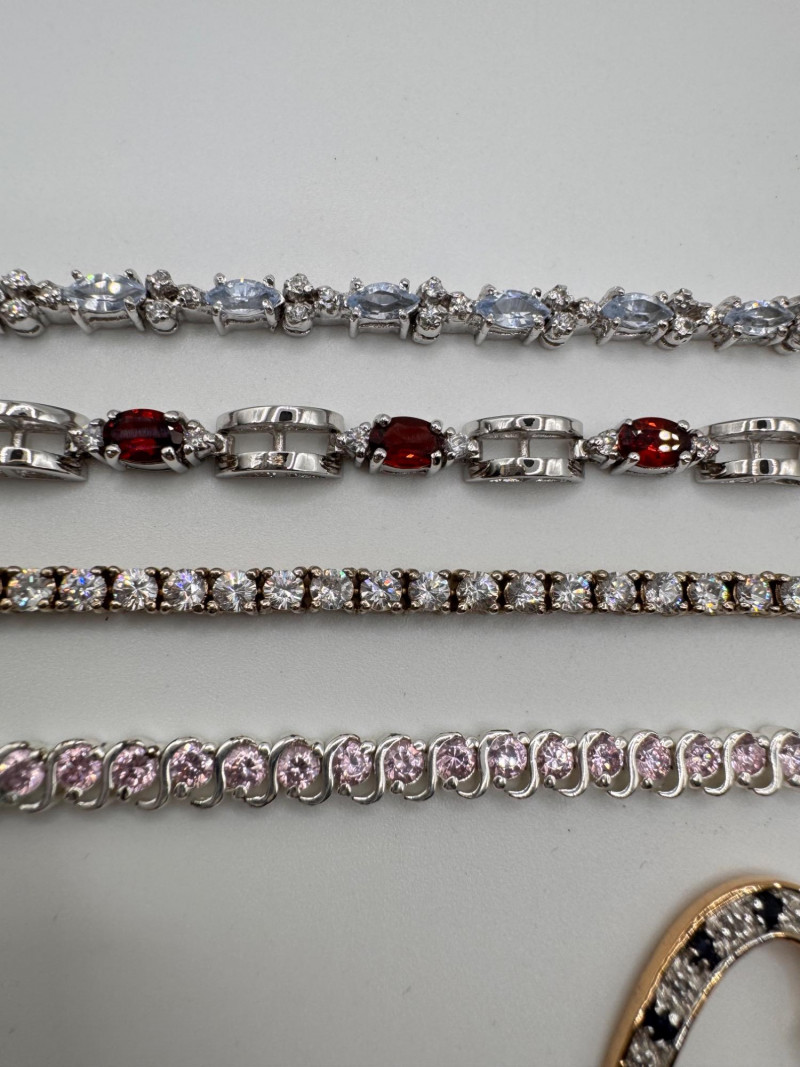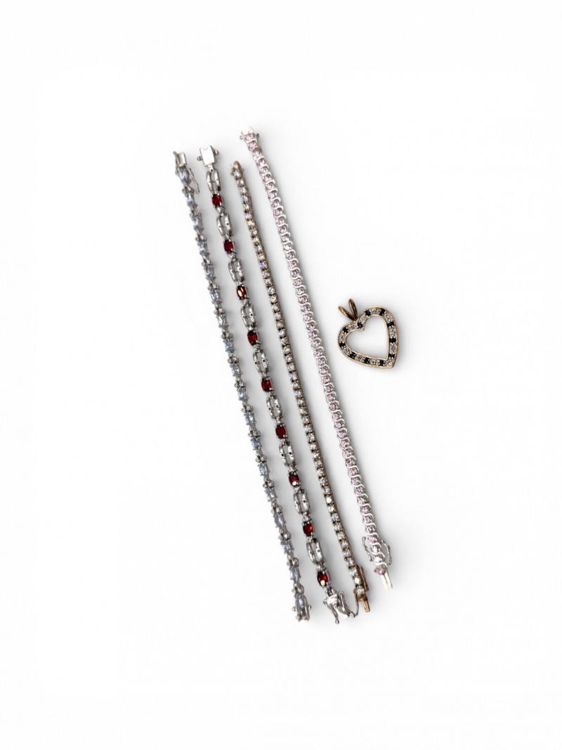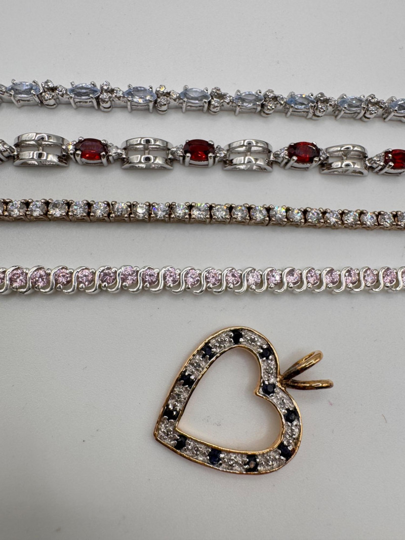 Lot # 34 - Sterling Silver Garnet & CZ Tennis Bracelets + Diamond Sapphire Heart