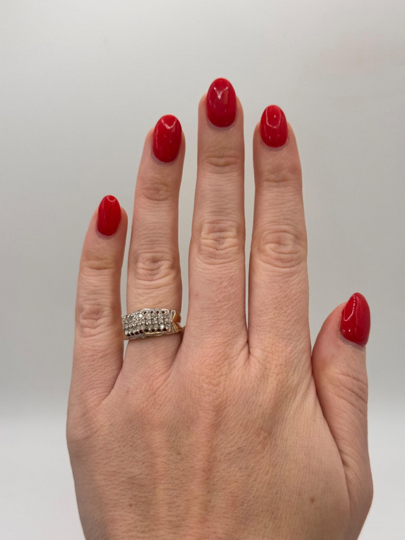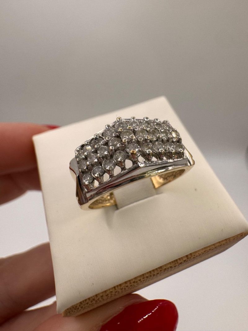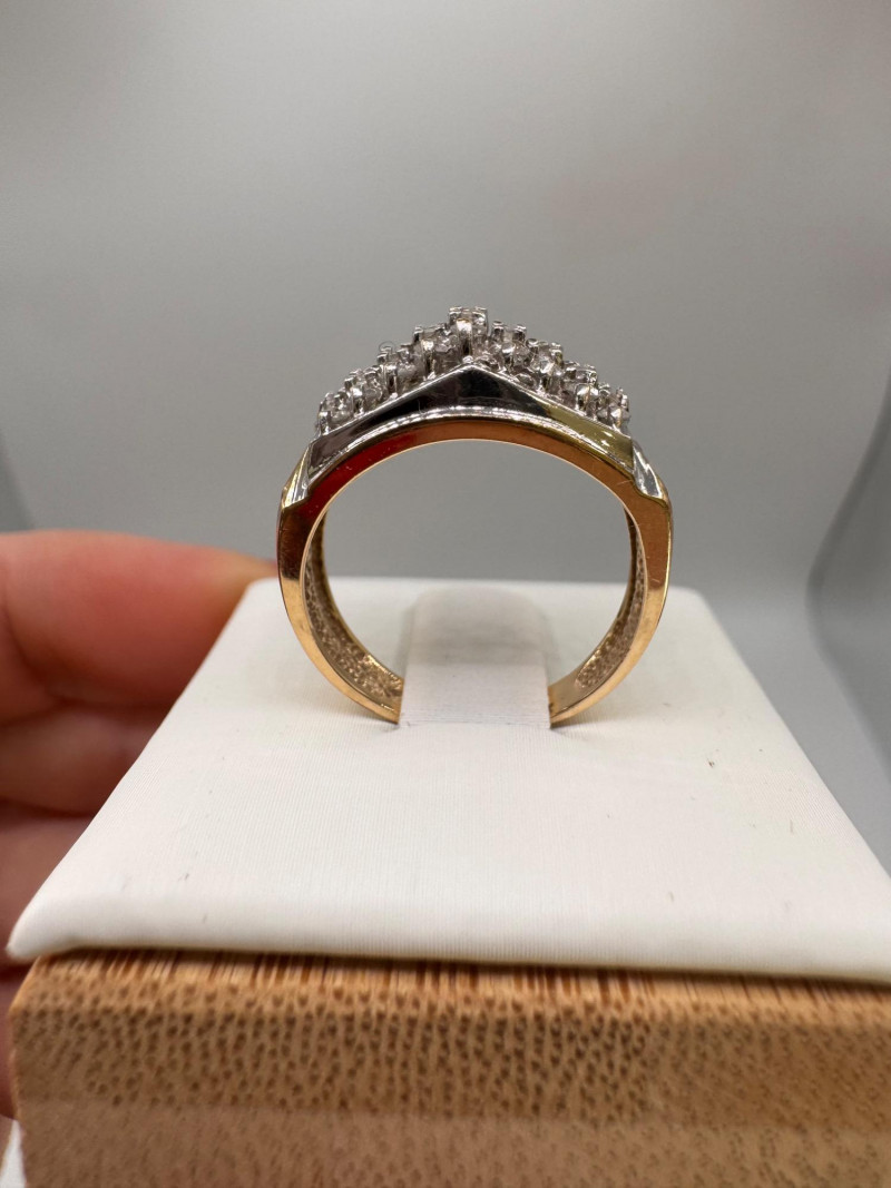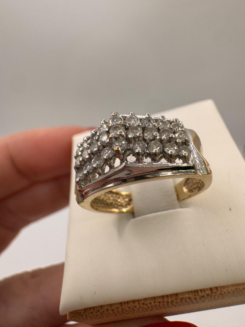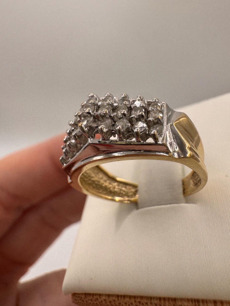 14K Yellow & White Gold Three Row Diamond Band Ring.