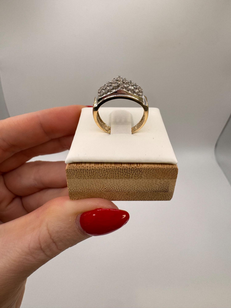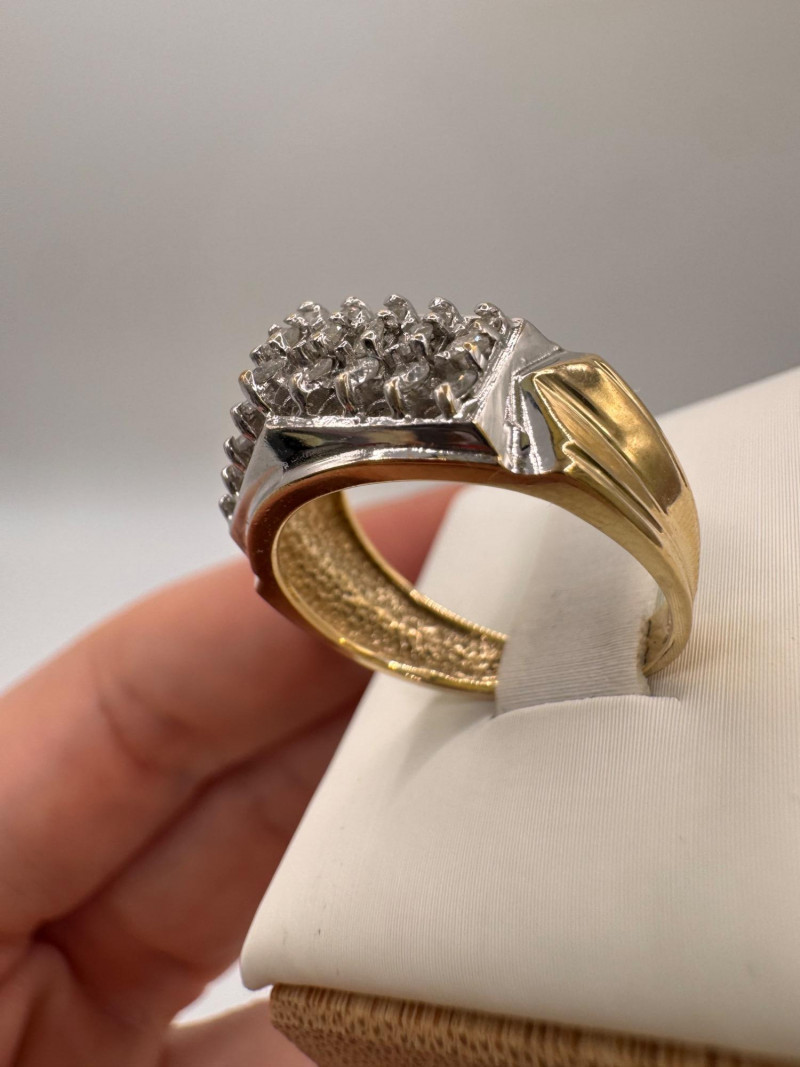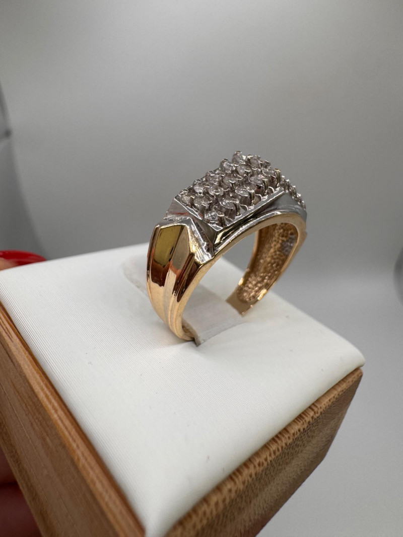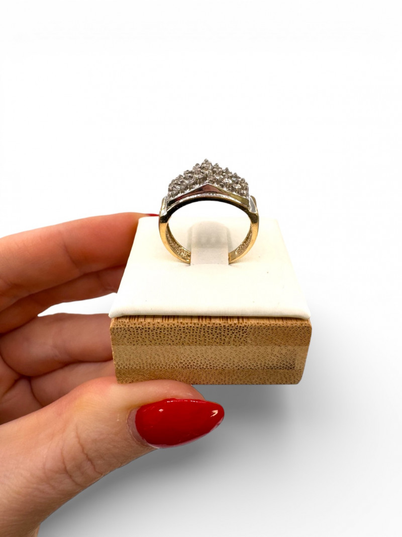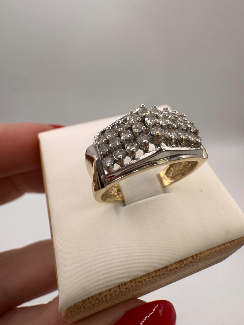 14K Yellow & White Gold Three Row Diamond Band Ring.