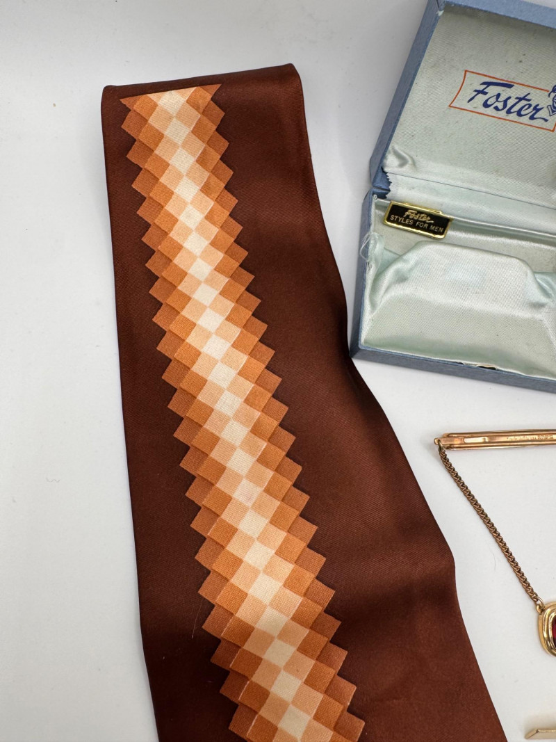 Vintage Mid Century Men’s Accessories – Tie, Tie Bars, Tie Tacks & Box.