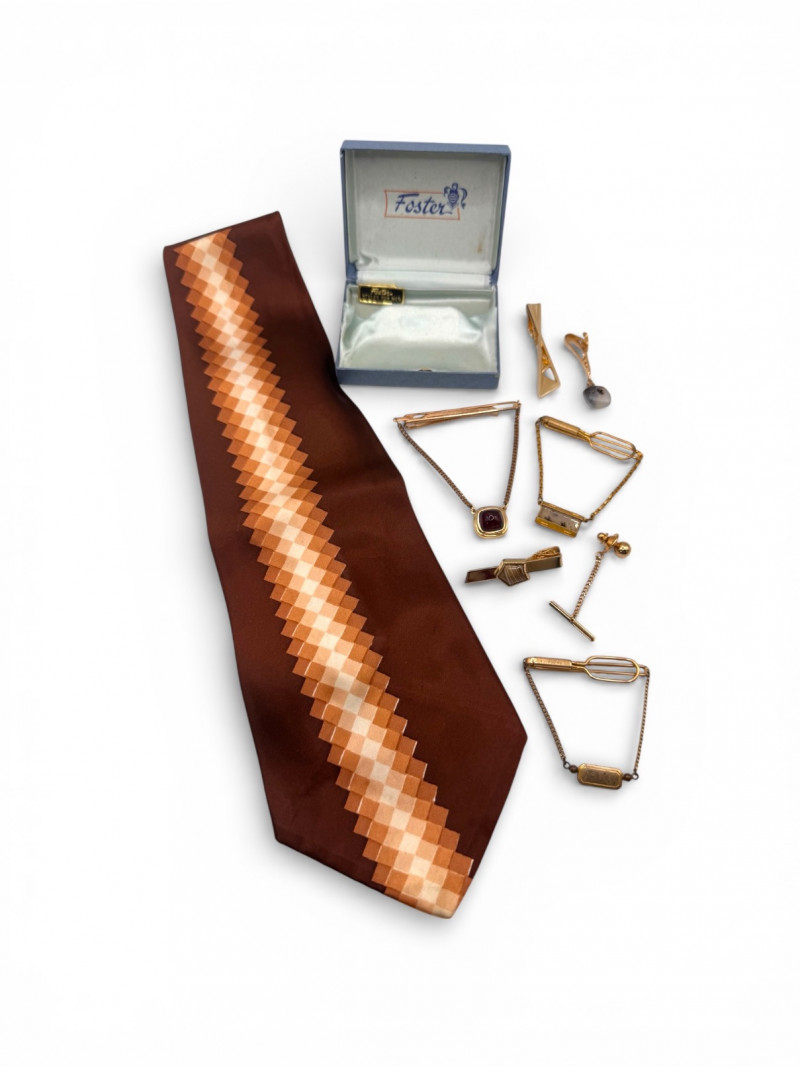 Lot # 44 - Vintage Mid Century Men’s Accessories – Tie, Tie Bars, Tie Tacks & Box