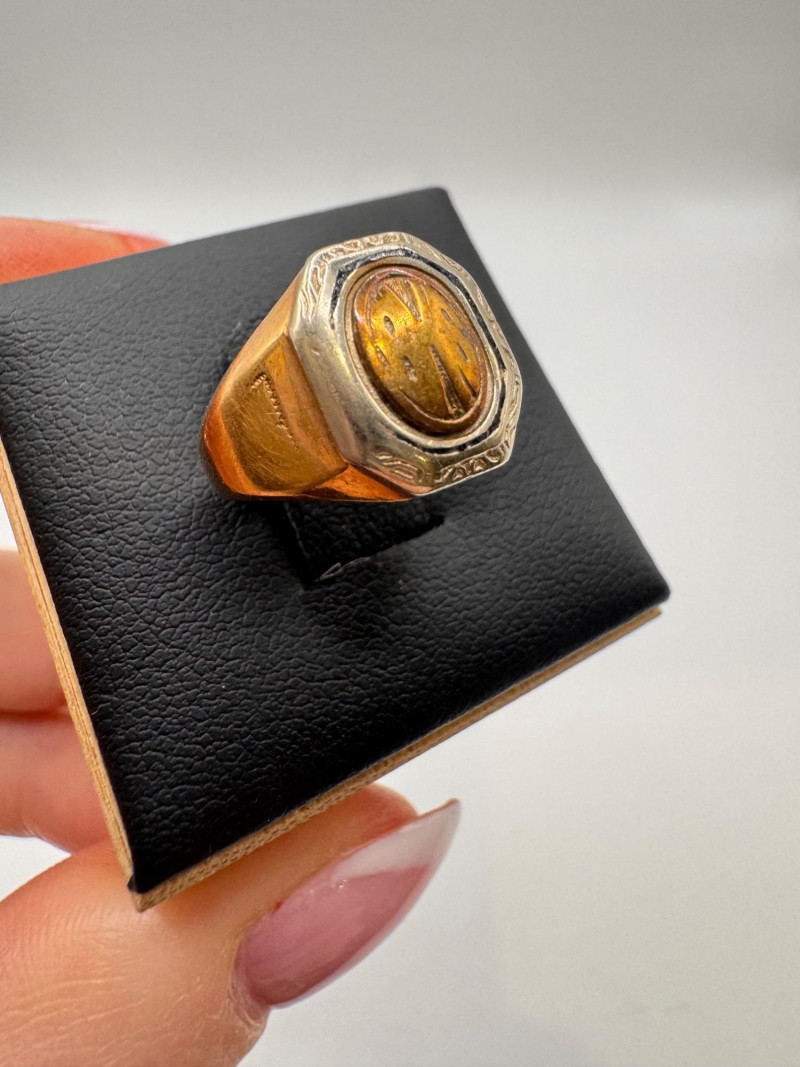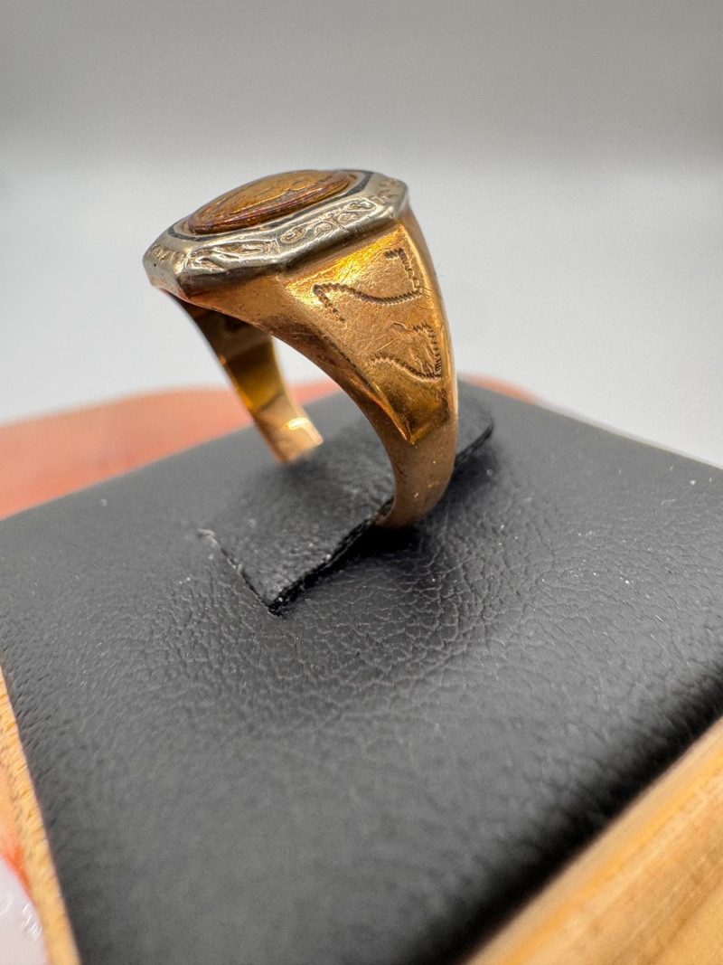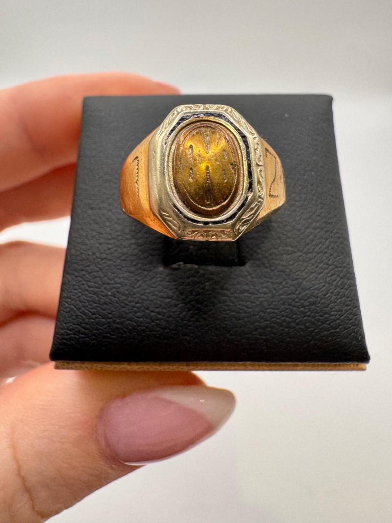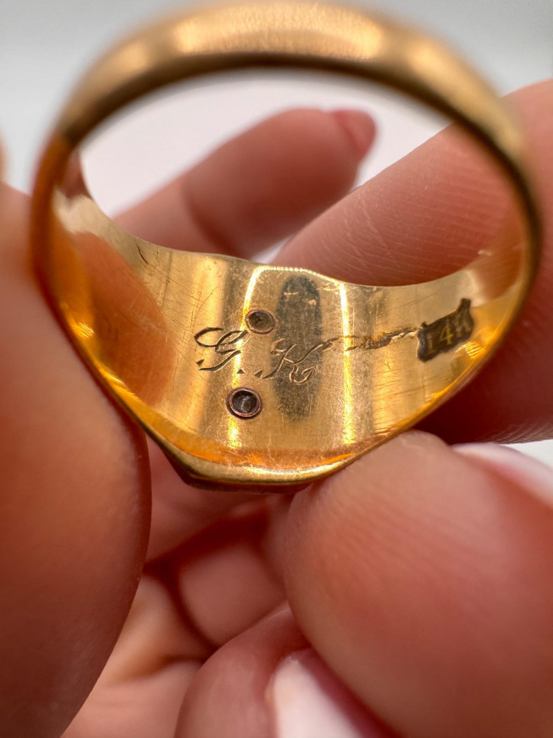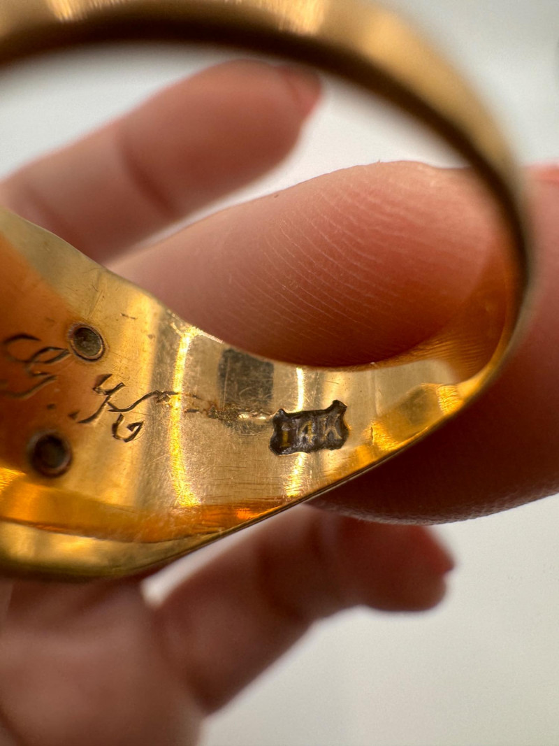 14K Gold Vintage Style Signet Ring w/ Engraved Shoulders – 5.09g.