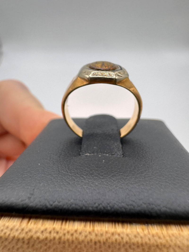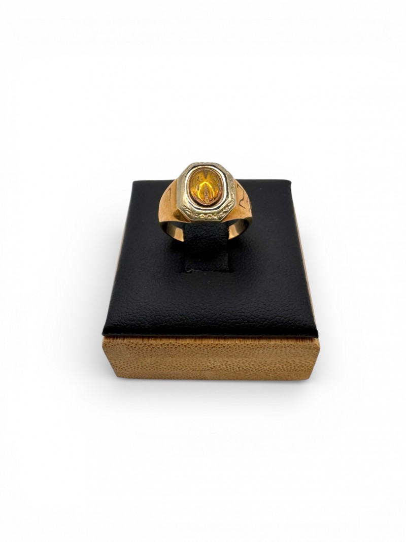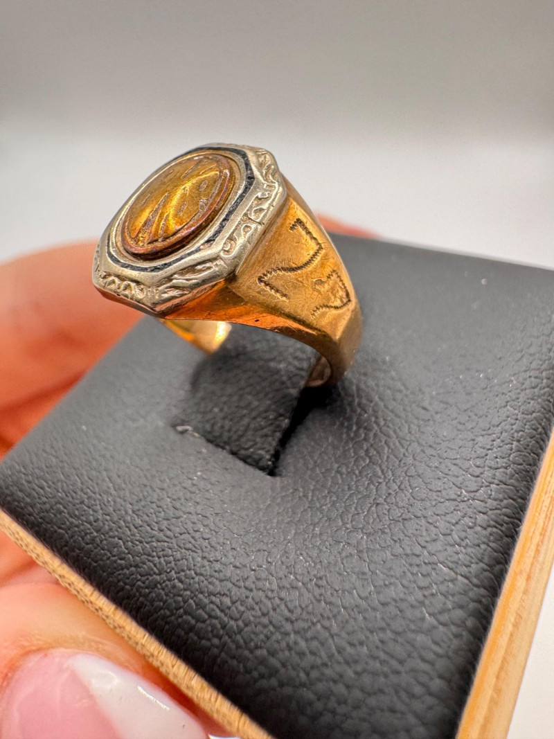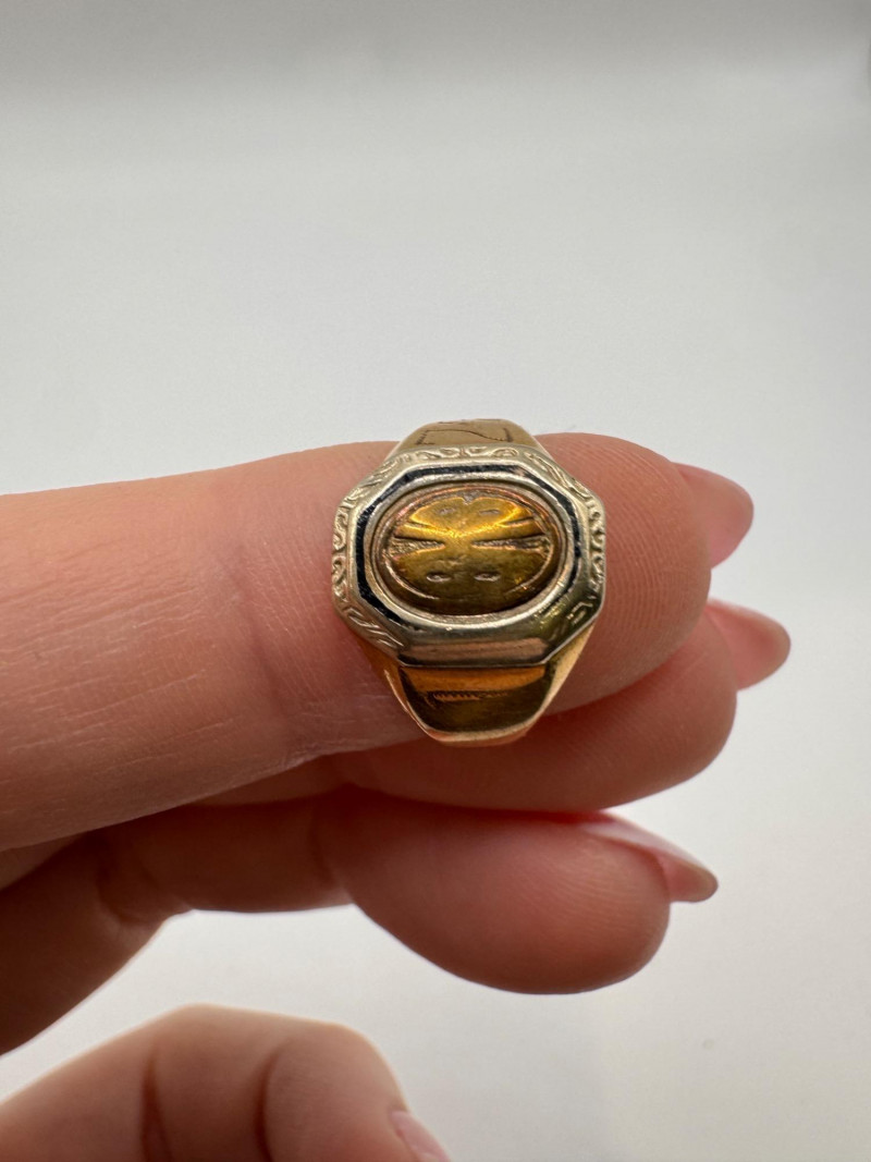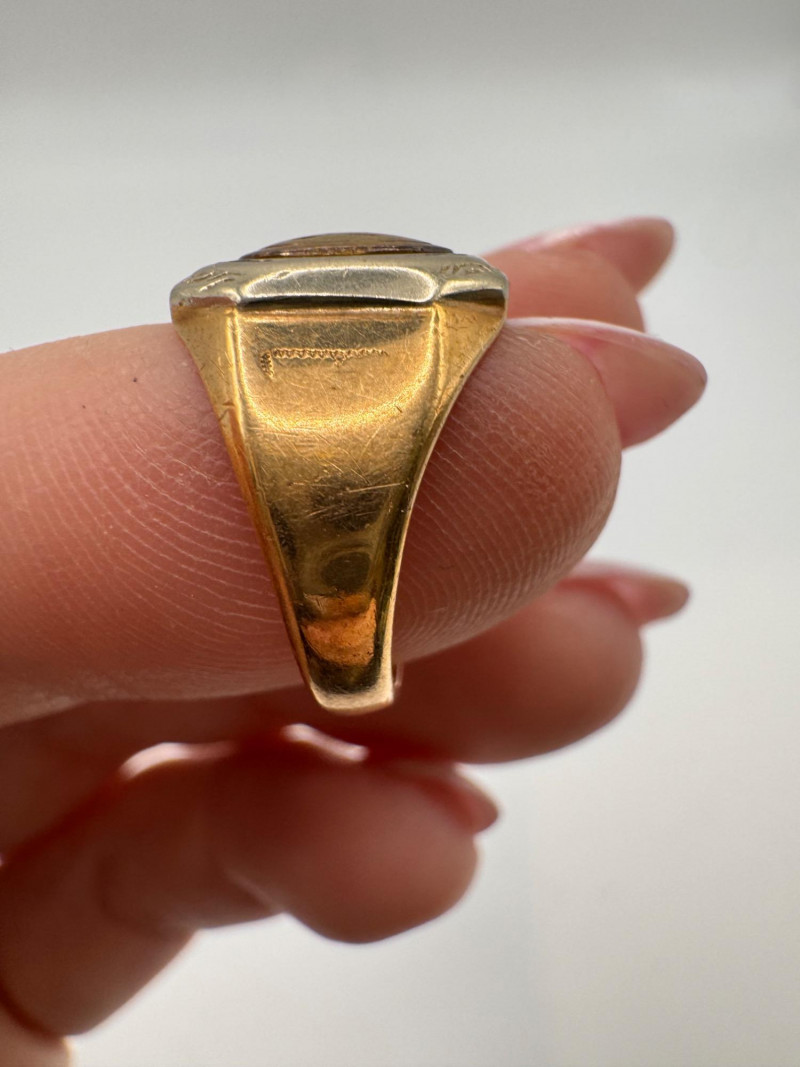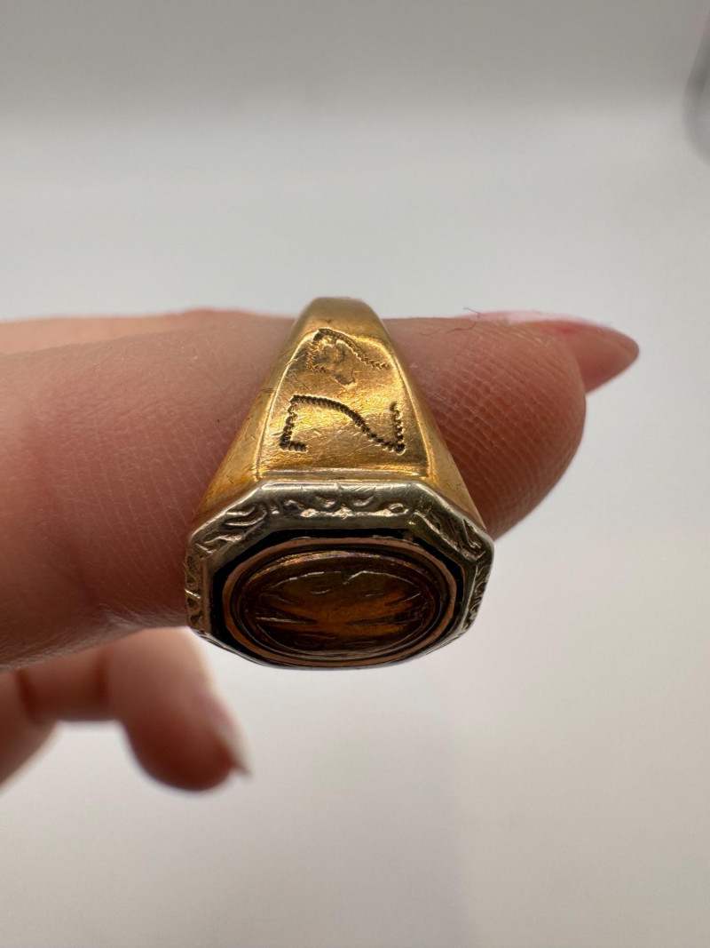 14K Gold Vintage Style Signet Ring w/ Engraved Shoulders – 5.09g.