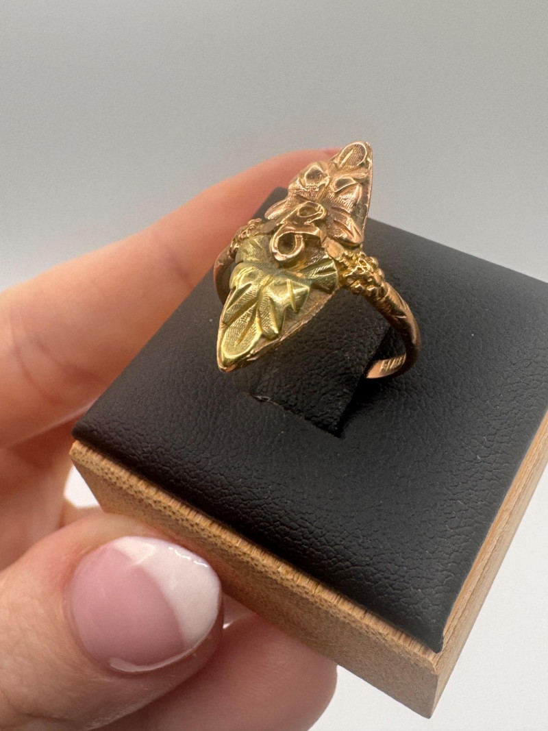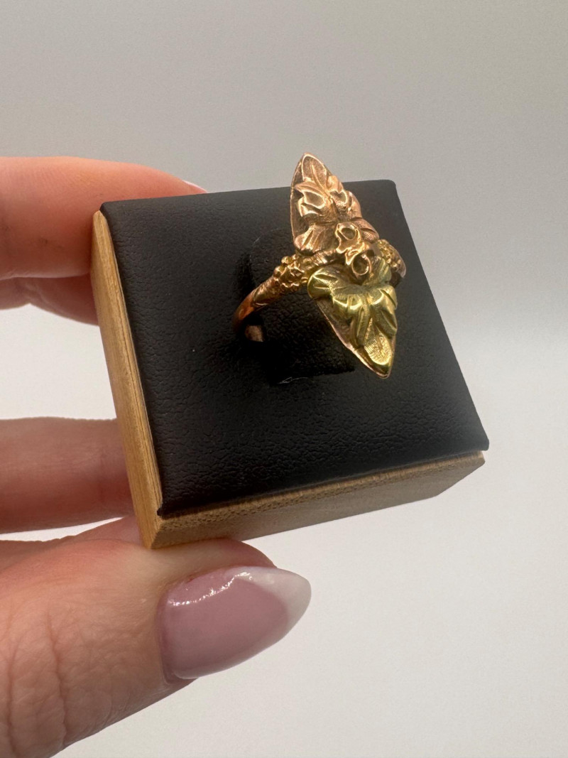 10K Black Hills Gold Leaf & Grape Multi-Tone Ring Sz 5.25 2.28g.