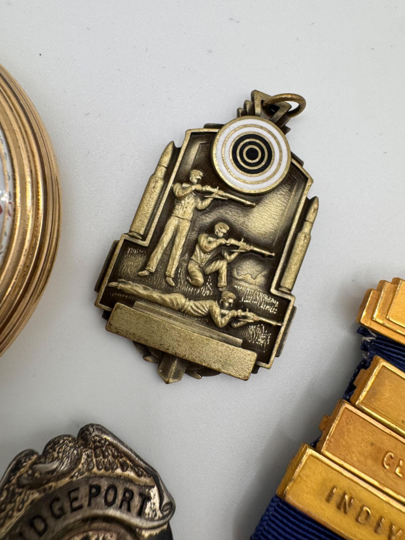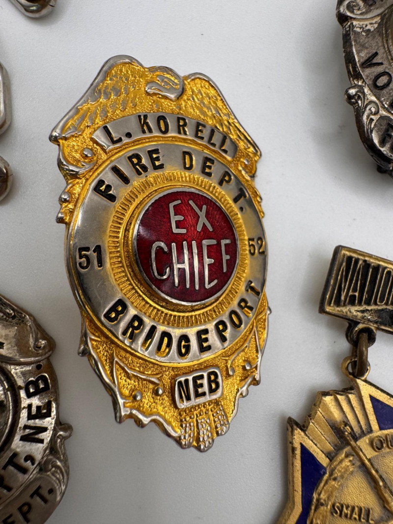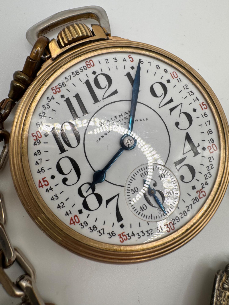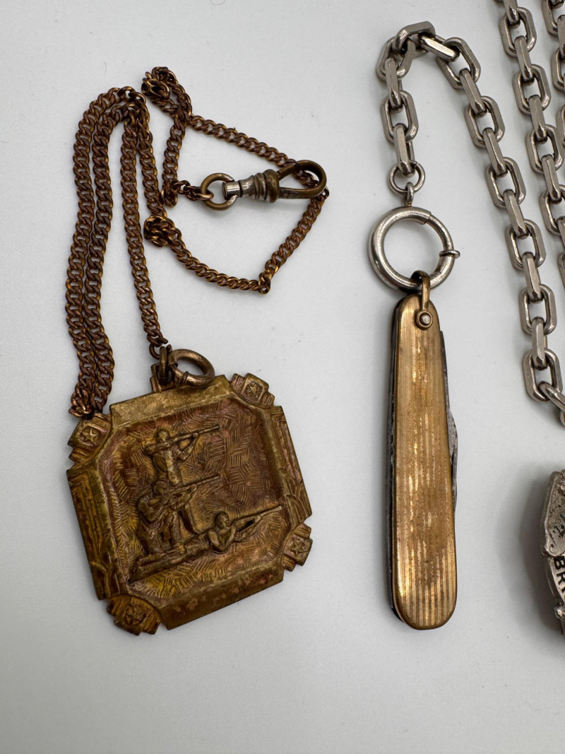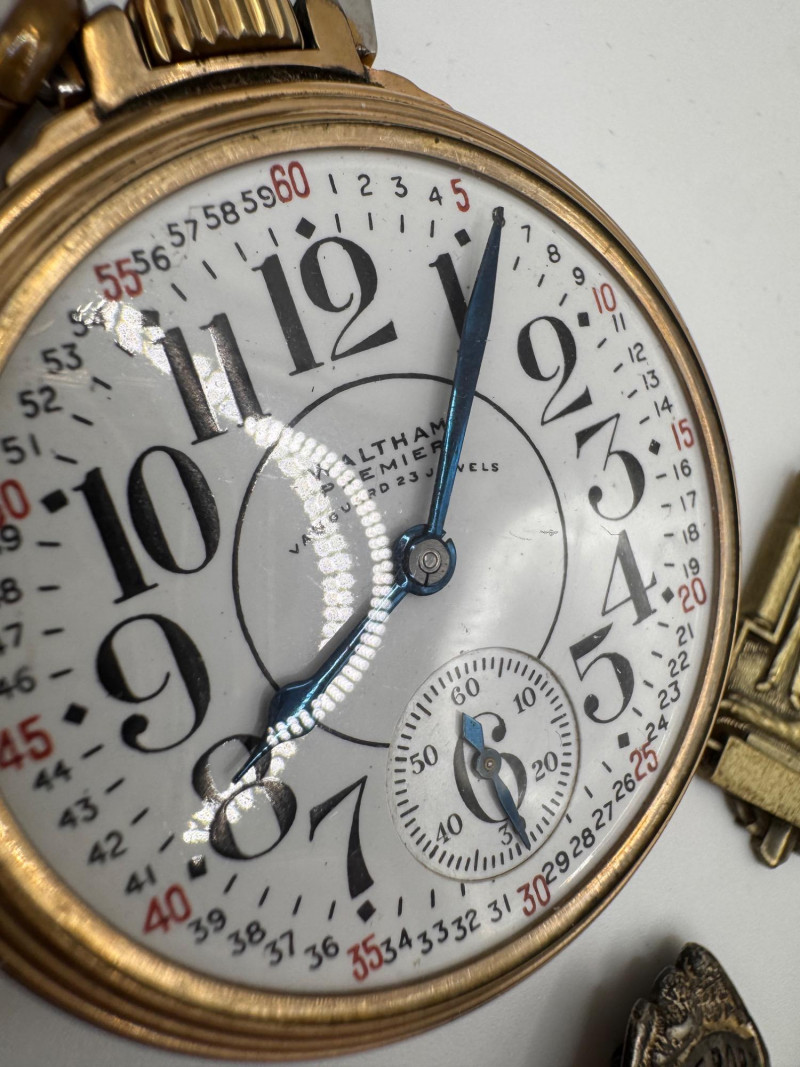 Lot # 54 - Vintage Waltham large Pocket Watch & Fraternal / Fire Dept Badges