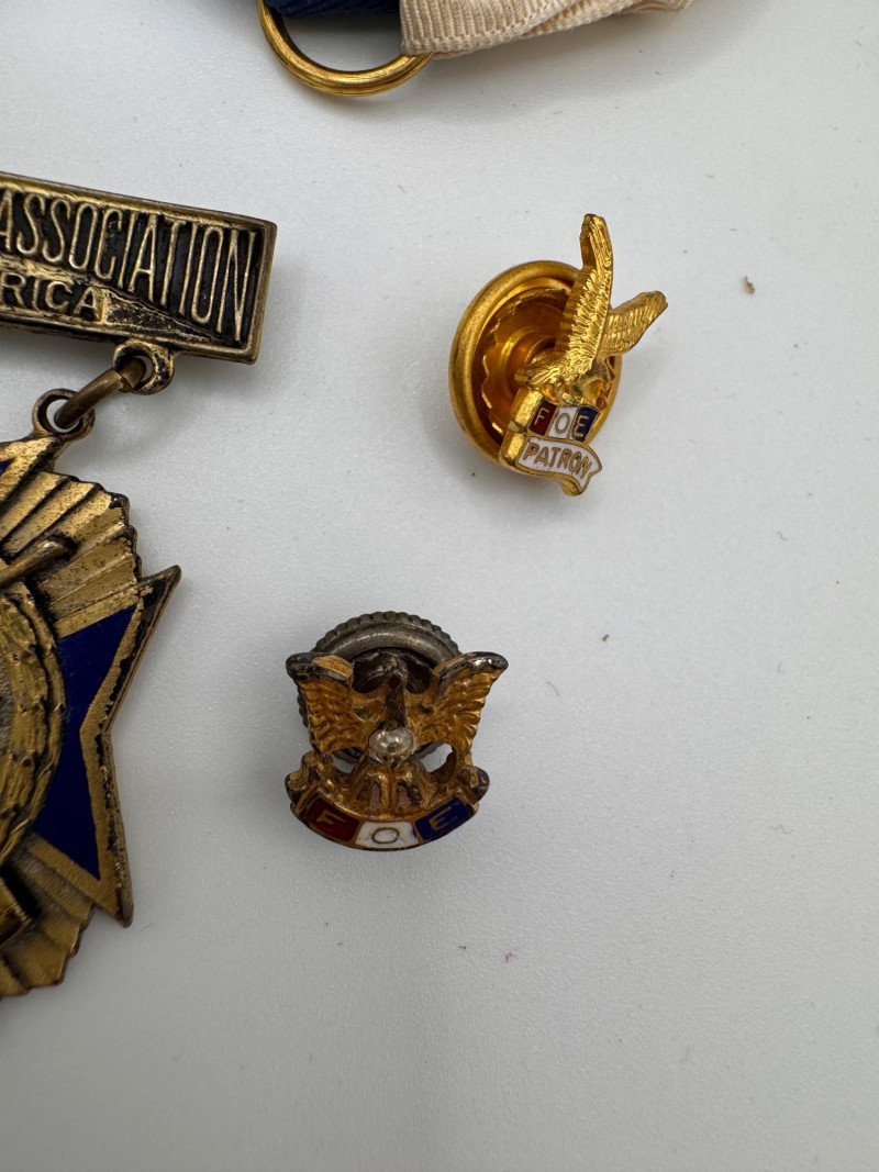 Vintage Waltham large Pocket Watch & Fraternal / Fire Dept Badges.