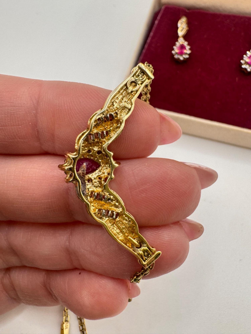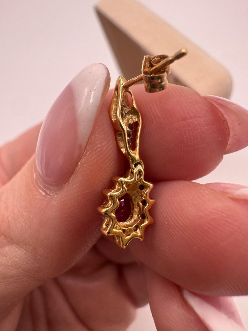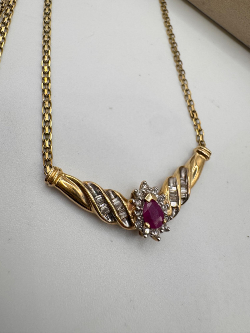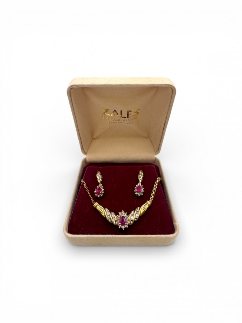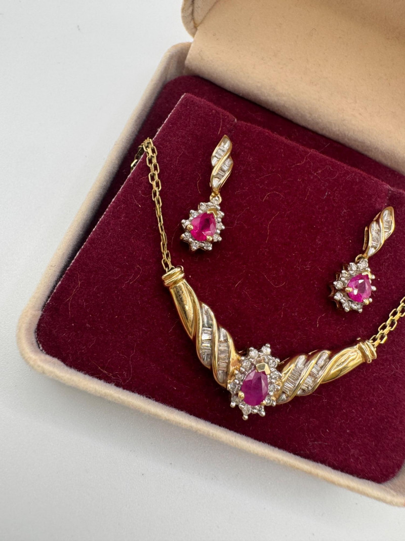 Lot # 1 - 14k Chain 10k Ruby Diamond Necklace Earring Set 8.07g
