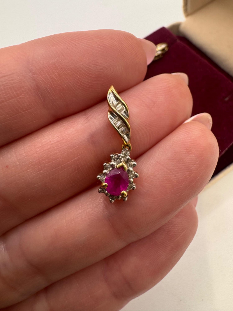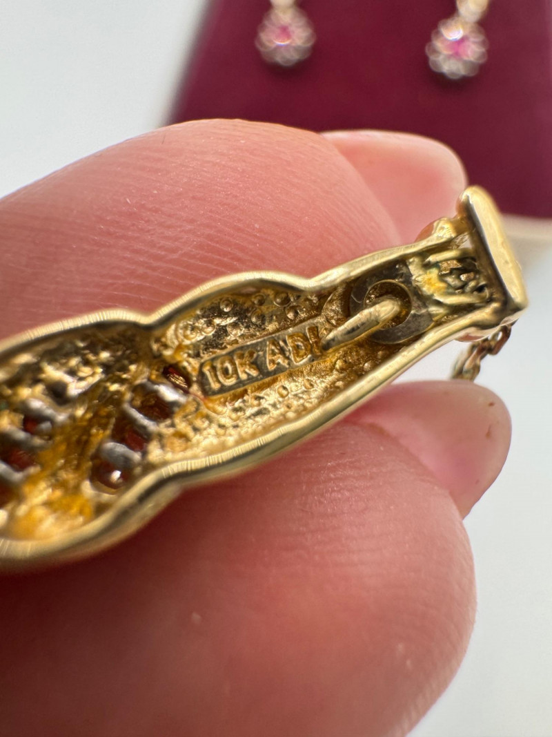 14k Chain 10k Ruby Diamond Necklace Earring Set 8.07g.