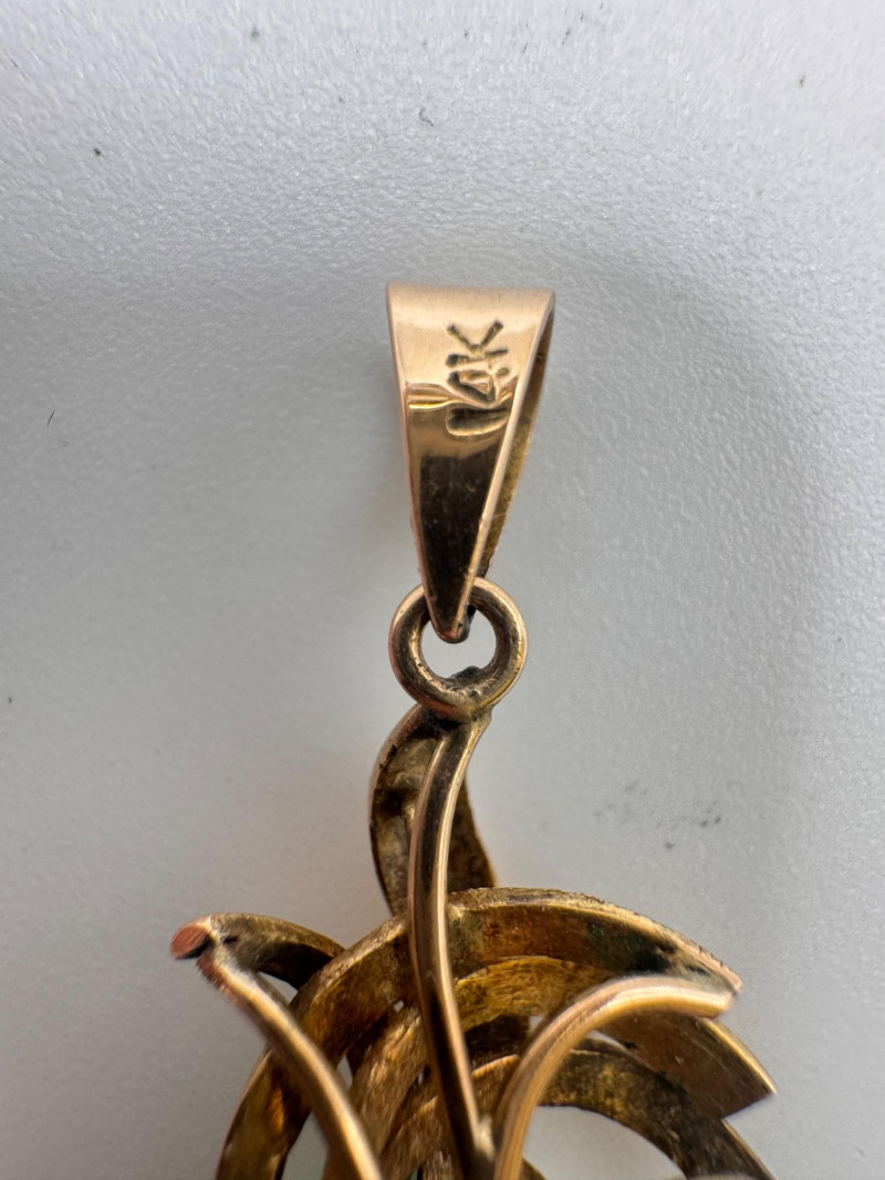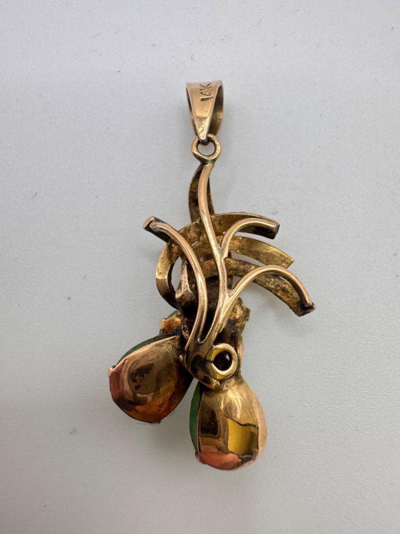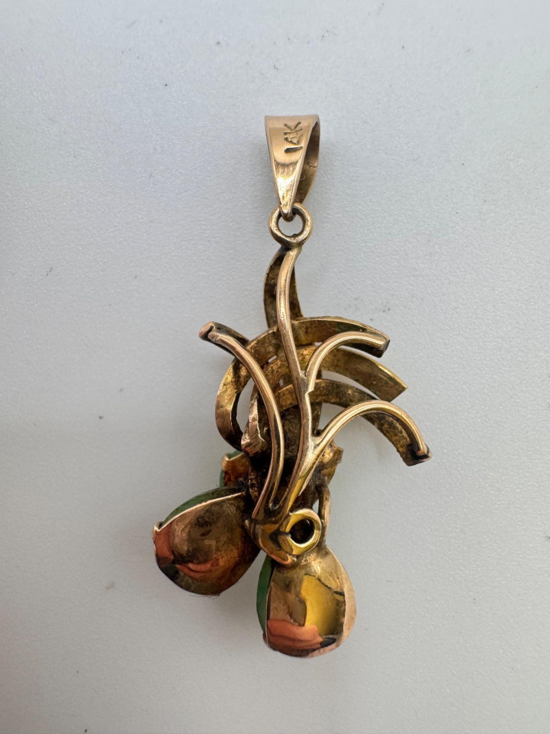 Lot # 16 - Vintage 14K Gold Carved Jade Drop Pendant 3g