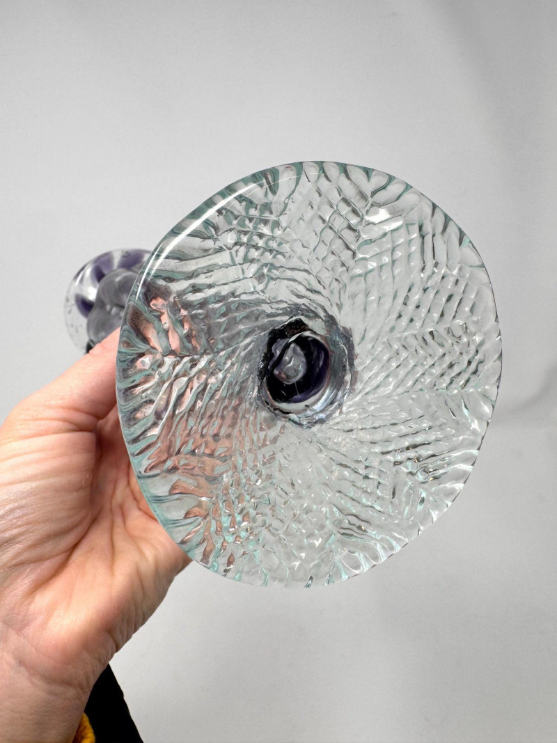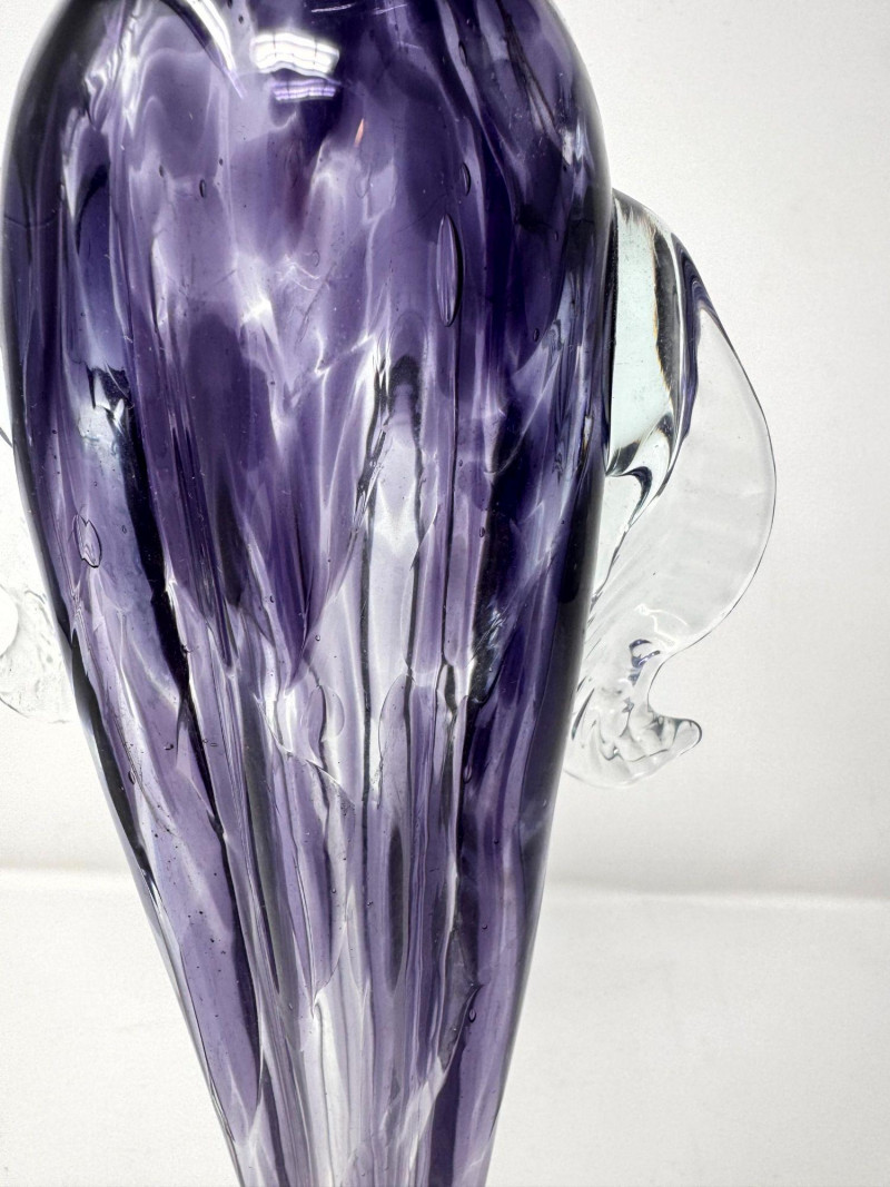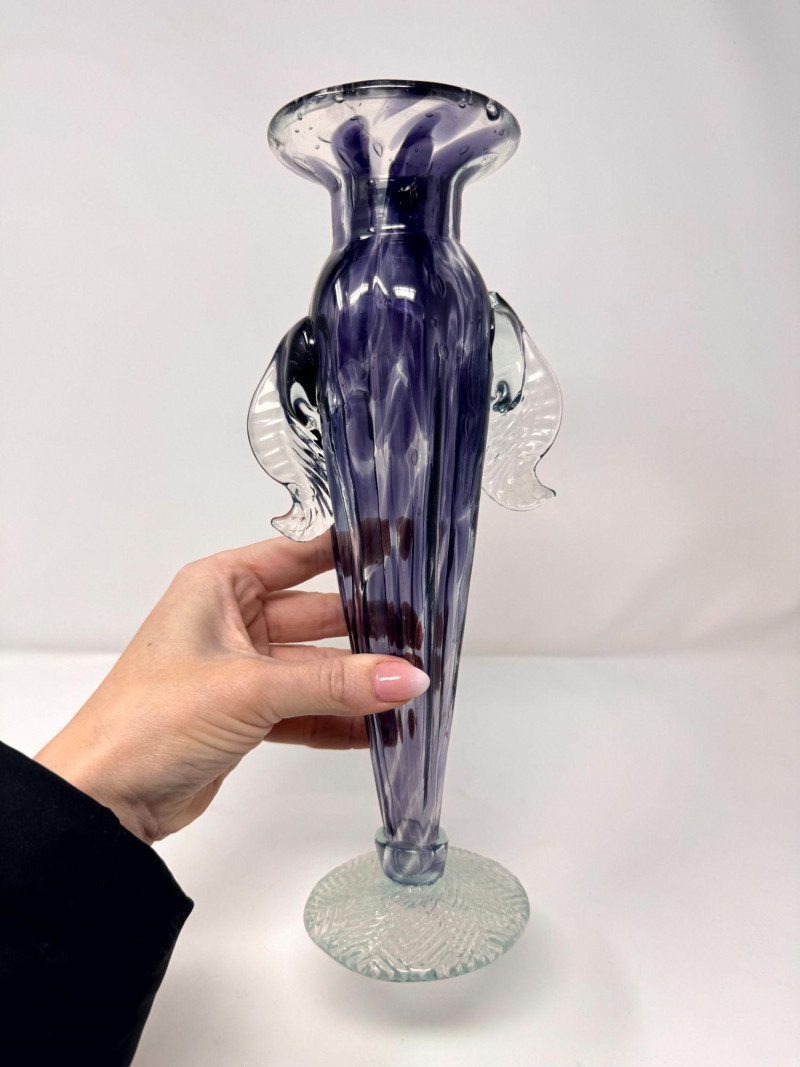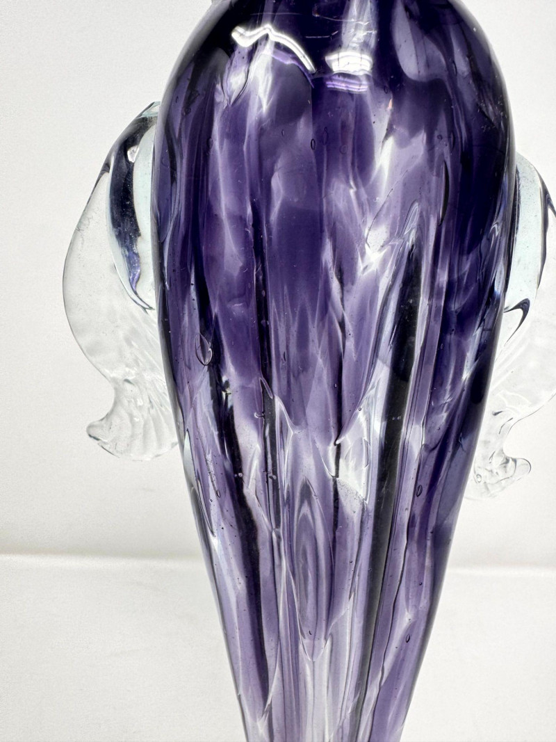Lot # 26 - Blown Art Glass Vase Purple Swirl w/ Clear Applied Handles