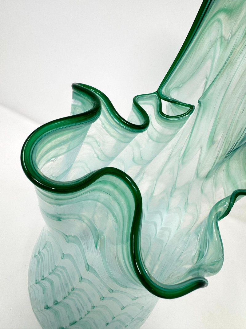 Lot # 35 - Signed Free Form Ruffled Handkerchief Studio Art Glass Vase