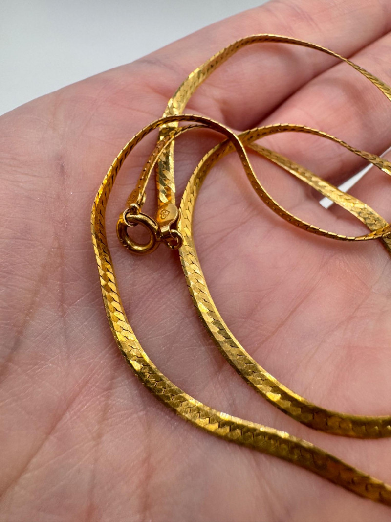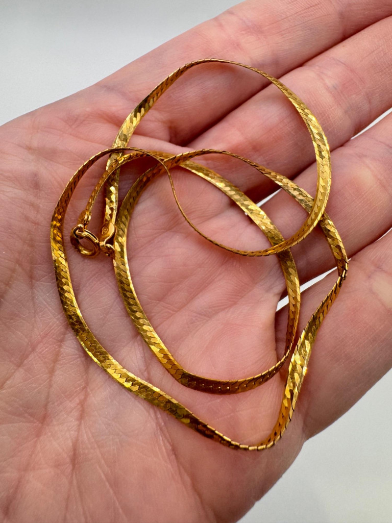 14k Gold 15.5” Flat Herringbone Chain Necklace 3.78g.