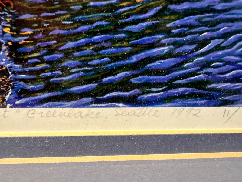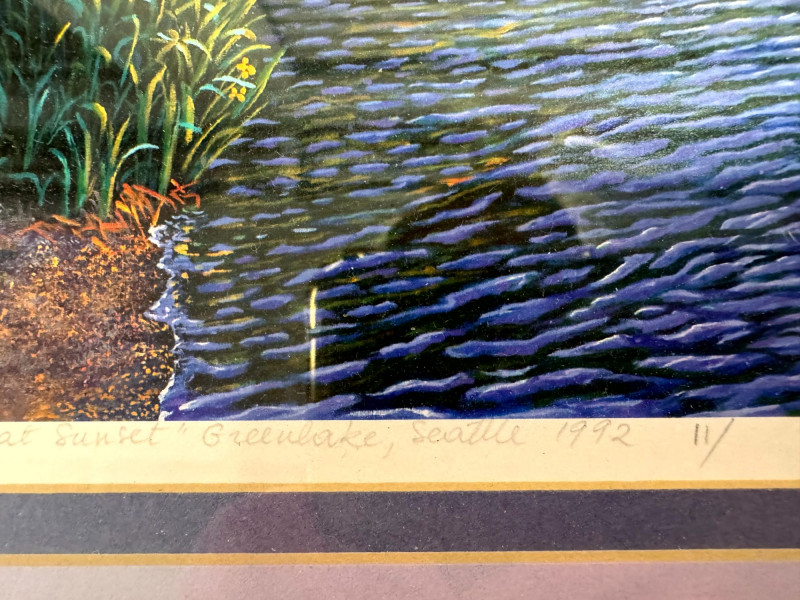 Frederick Noret Signed Greenlake Seattle + Framed Sunset Print.