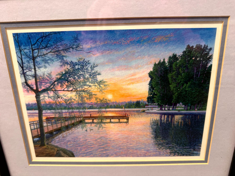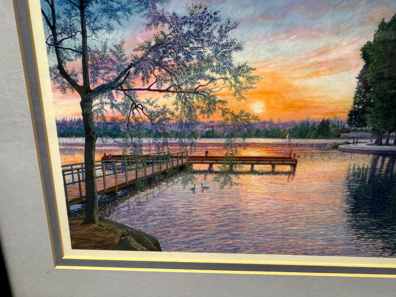 Lot # 56 - Frederick Noret Signed Greenlake Seattle + Framed Sunset Print