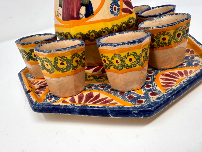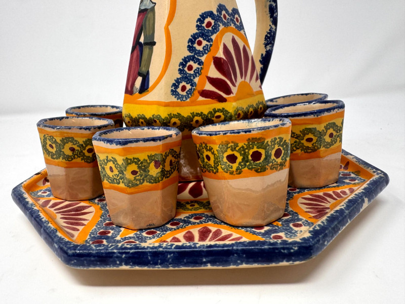 Lot # 60 - Henriot Quimper French Pottery Liqueur Set – Bottle, 6 Cups & Tray
