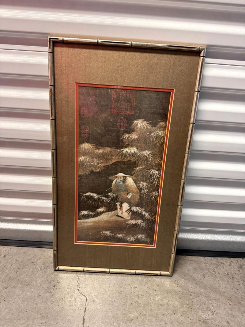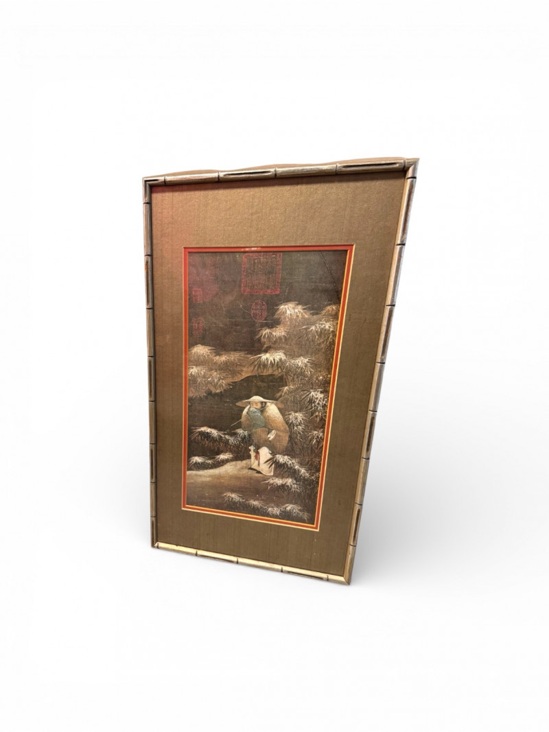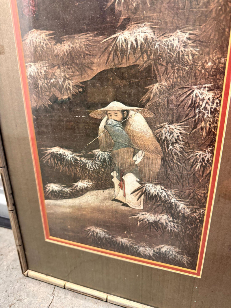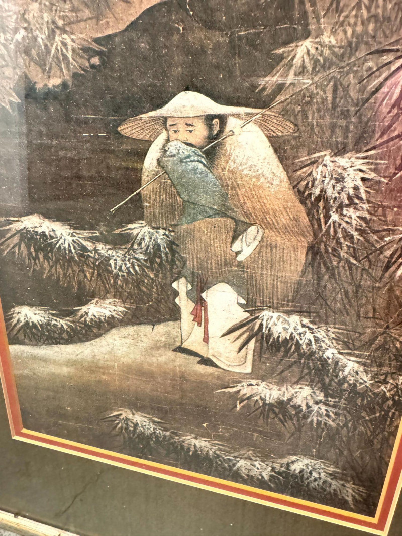 Lot # 62 - Fishing in the Snow Asian Framed Art Print w/ Gold Tone Matting